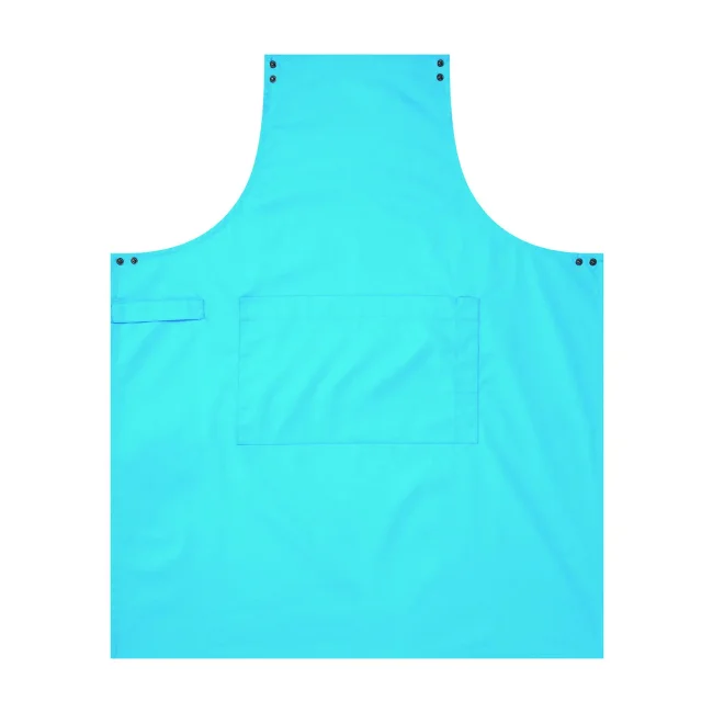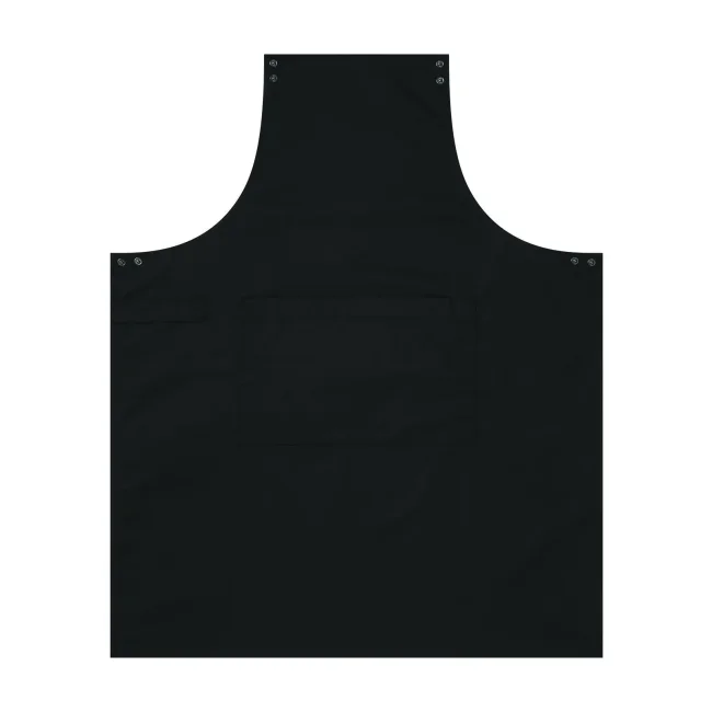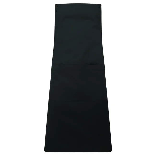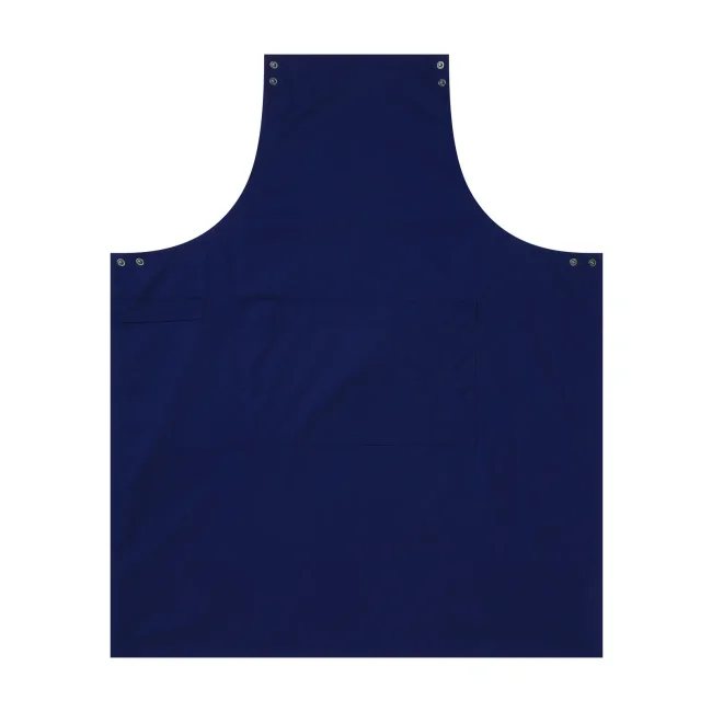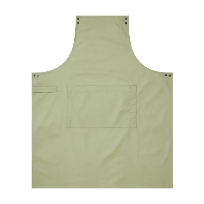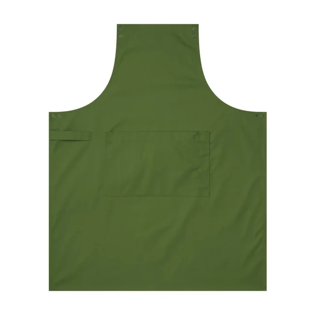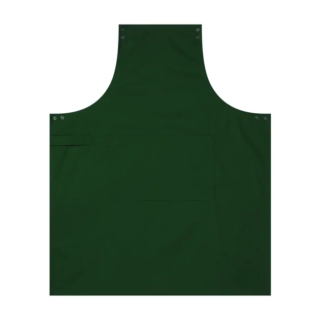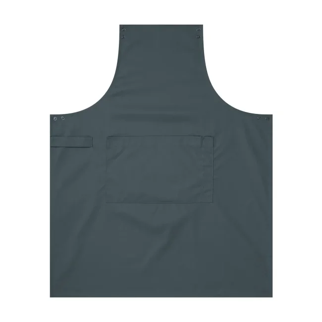 65% Poliestere riciclato 35% cotone. Corpo del grembiule in policotone riciclato, pensato per essere abbinato ai lacci di collo e fianchi dell'art. PR191, tasca centrale larga 30 cm e lunga 21 cm, tasca per lo straccio in tessuto.