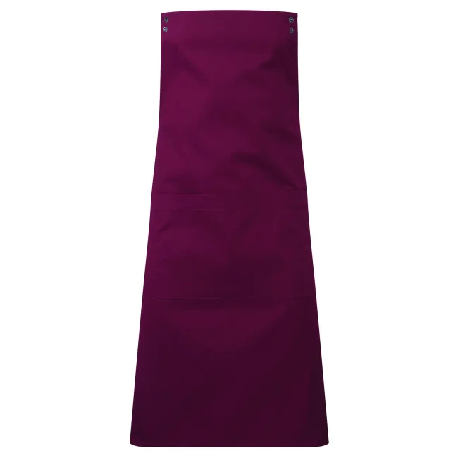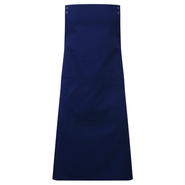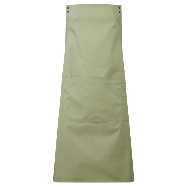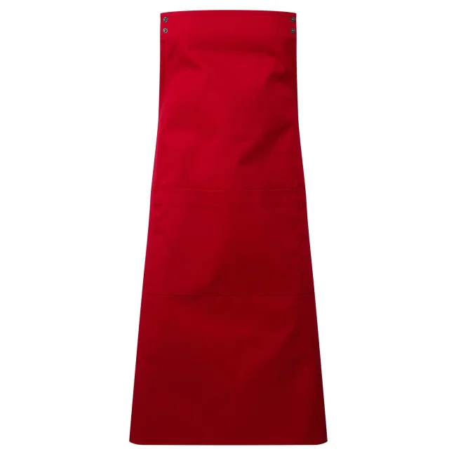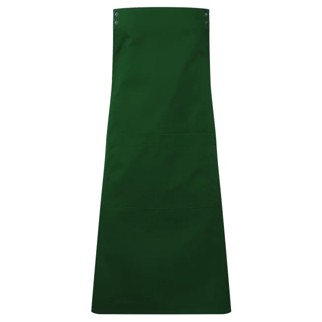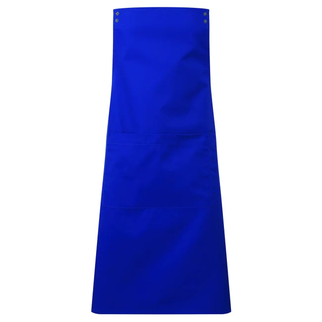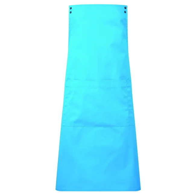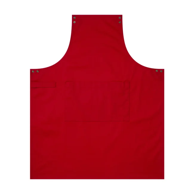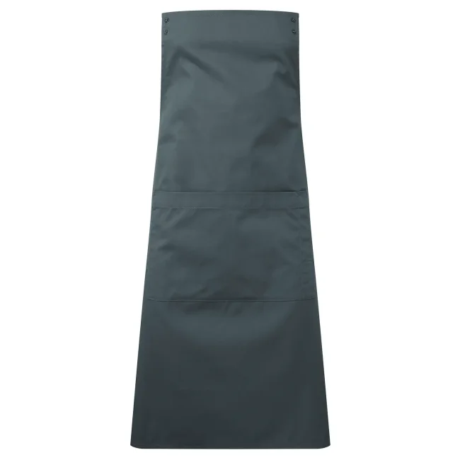 65% Poliestere riciclato 35% cotone. Corpo del grembiule in policotone riciclato, pensato per essere abbinato ai lacci di collo e fianchi dell'art. PR191, tasca centrale larga 30 cm e lunga 21 cm, tasca per lo straccio in tessuto.