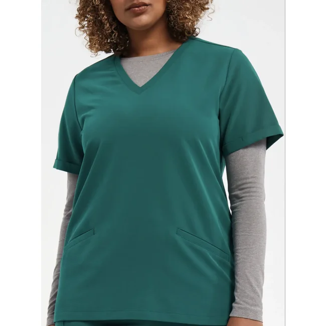 42% Poliestere, 33% Poliestere riciclato, 19% Viscosa, 6% Elastan. Casacca da donna in tessuto traspirante elasticizzato in 4 direzioni per assicurare comfort e libertà di movimento durante tutto il giorno, tessuto resistente, ingualcibile e easy care, taglio moderno con riprese posteriori e spacchetti laterali, scollo a V e due tasche frontali.