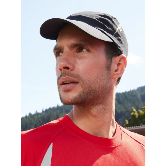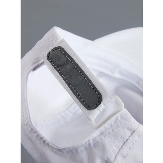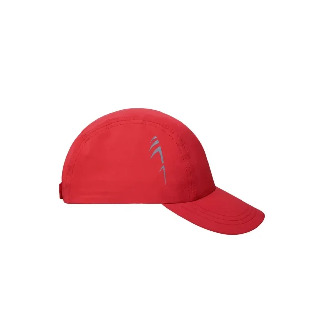 95% poliestere, 5% elastane. Cappellino sportivo con protezione raggi-UV 30+, 3cuciture decorative sulla visiera, dettagli riflettenti sui pannelli laterali, chiusura in velcro.
