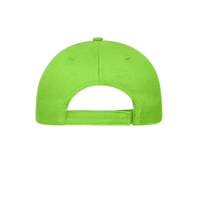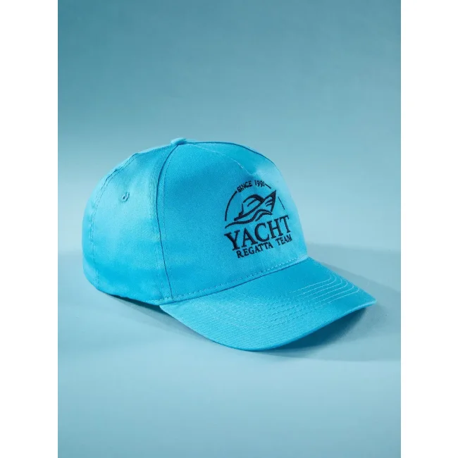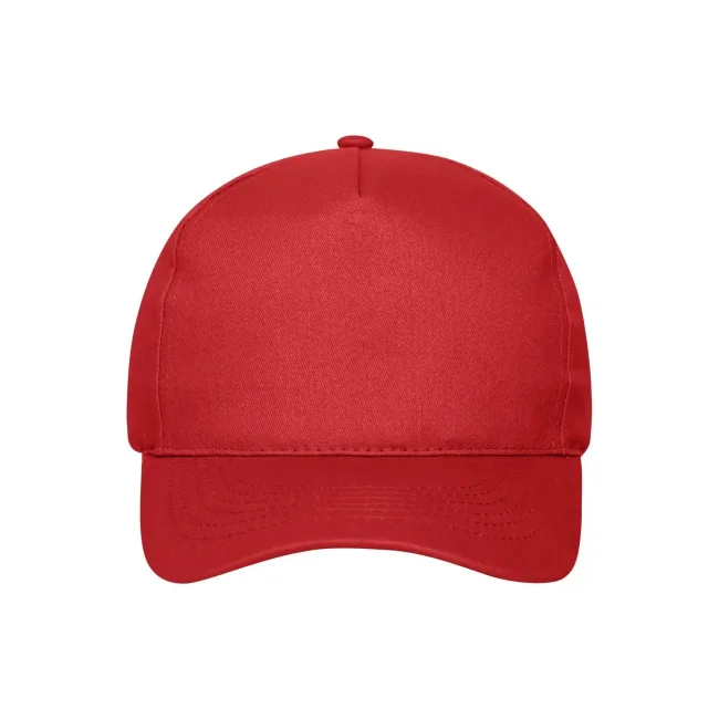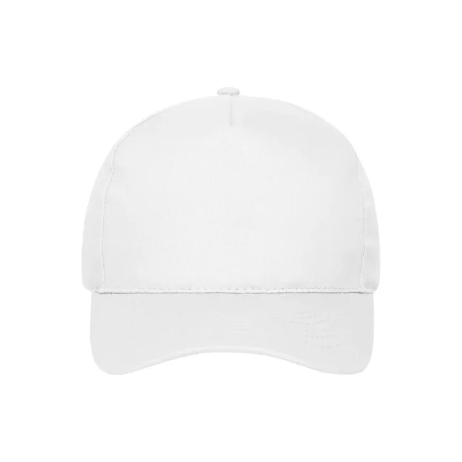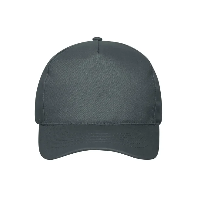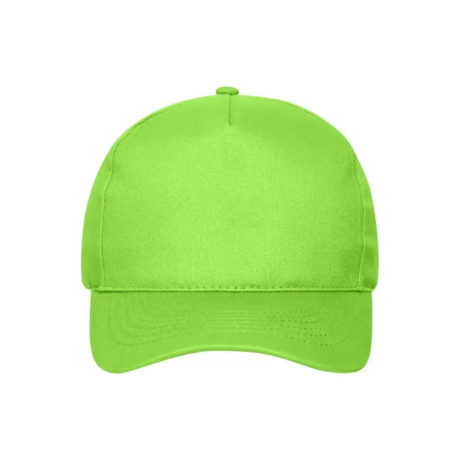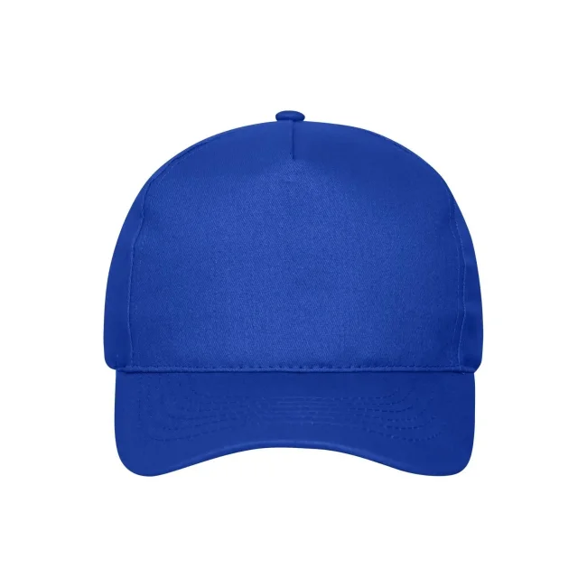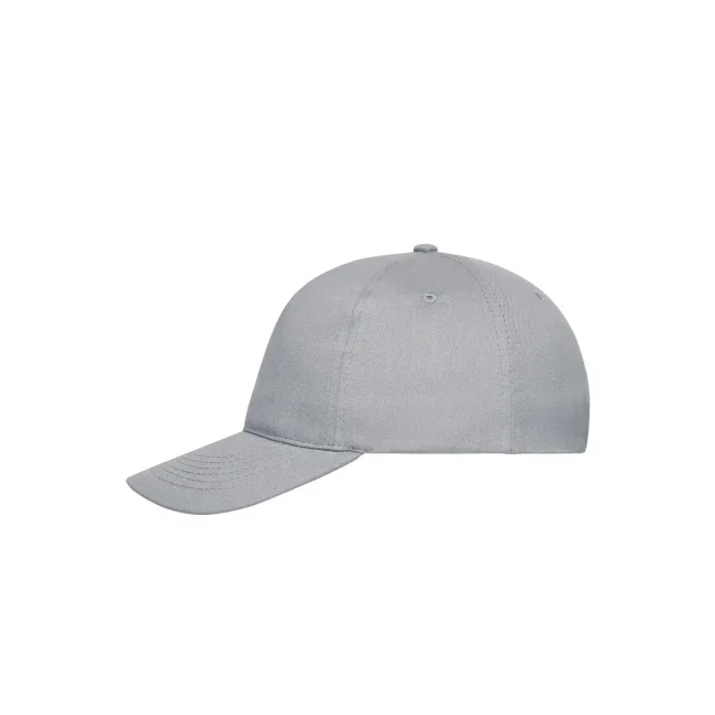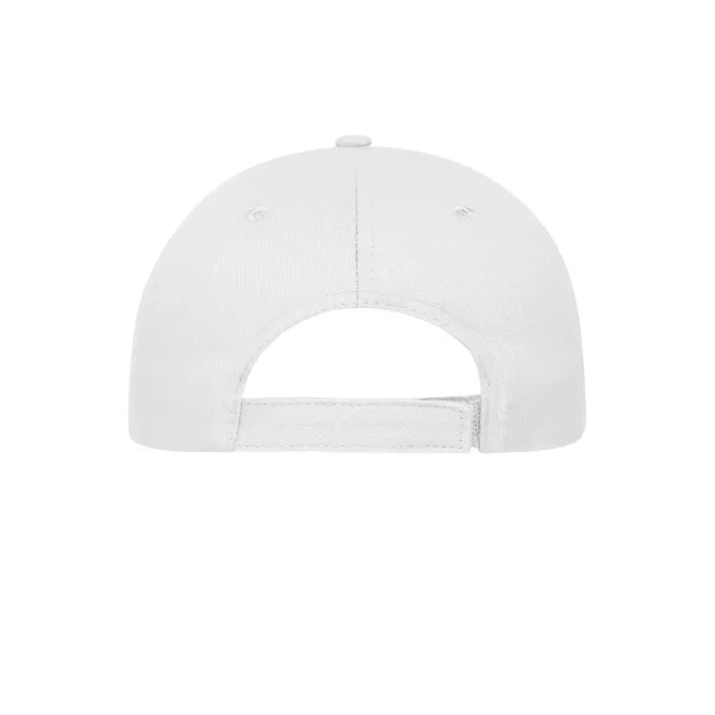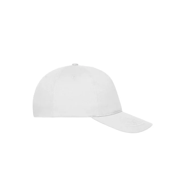 100% cotone organico. Cappellino a 5 pannelli, 4 fori di ventilazione ricamati, 6 cuciture decorative sulla visiera, pannello frontale laminato, piacevole da indossare grazie alla fascia interna foderata in raso, chiusura a strappo.