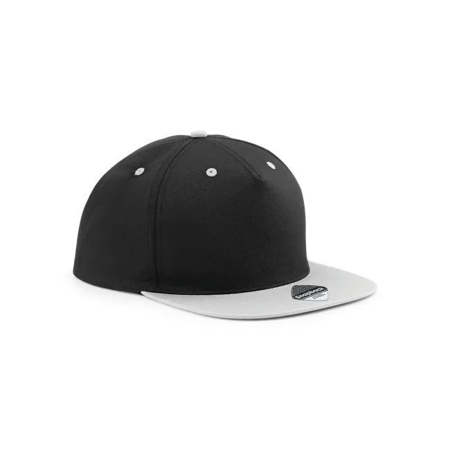 100% cotone twill. Cappellino a 5 pannelli in stile rap con visiera piatta e dettagli a contrasto, regolazione con snapback, etichetta strappabile, taglia unica.