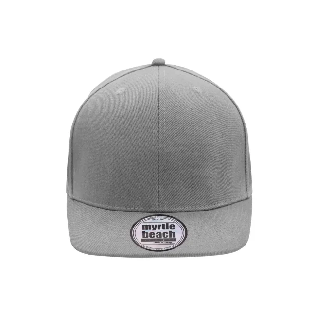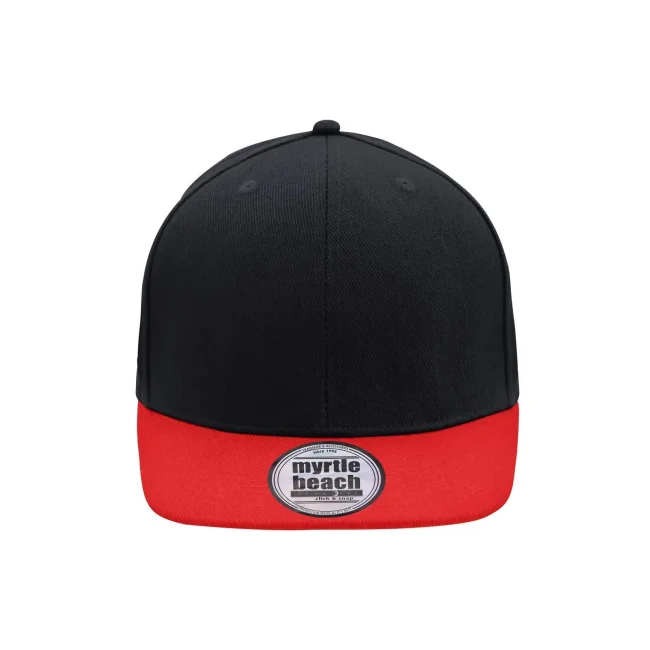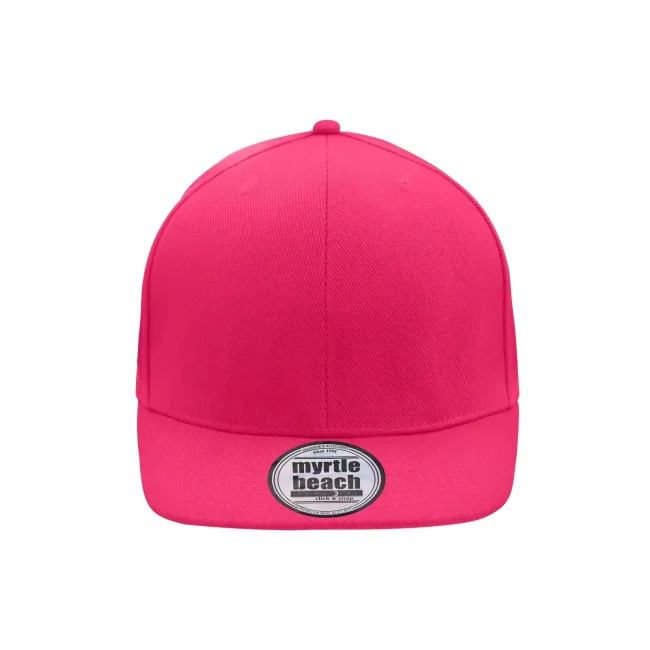 100% cotone. Berretto Streetstyle. Pregiata forma ""High Profile"", Visiera piatta con 8 adesivi e 6 cuciture decorative, 6 pannelli con 6 fori per l'aria in maglia, Pannelli anteriori laminati, Massimo comfort grazie alla fascia anteriore imbottita. Chiusura regolabile ""click & snap"".
