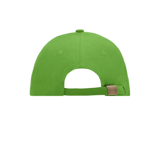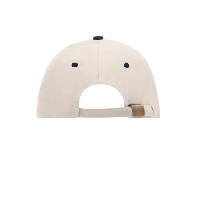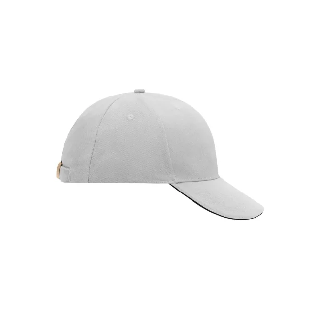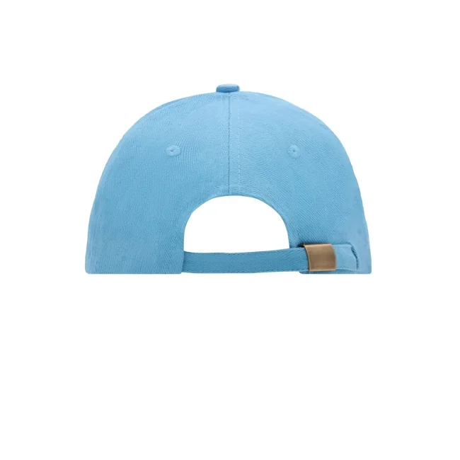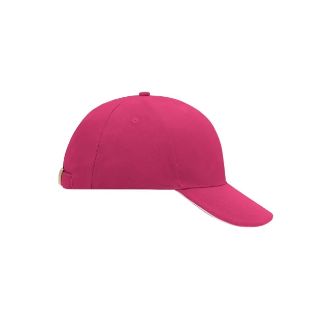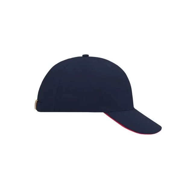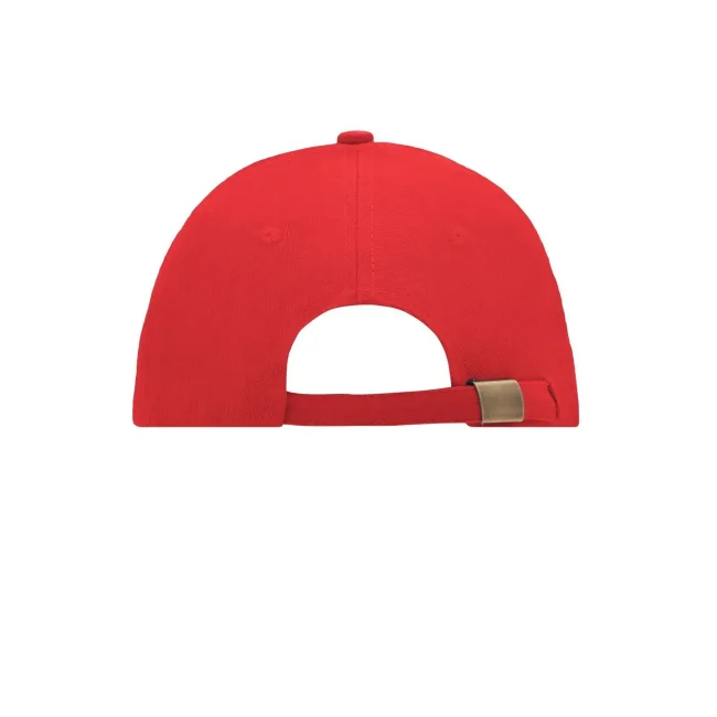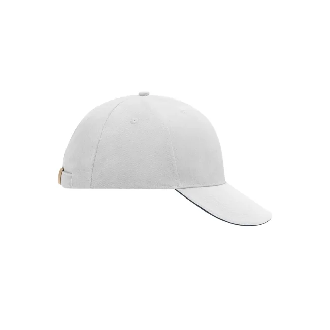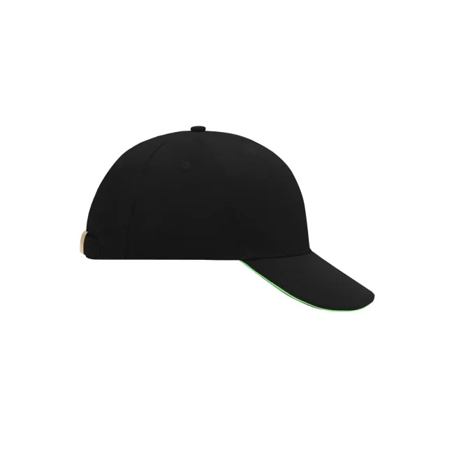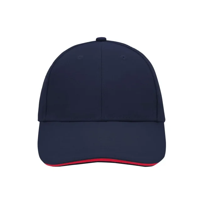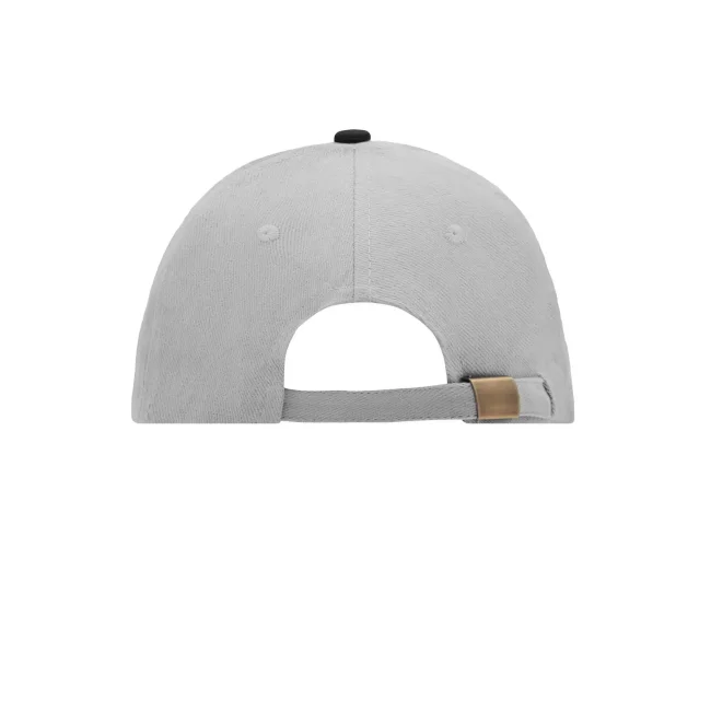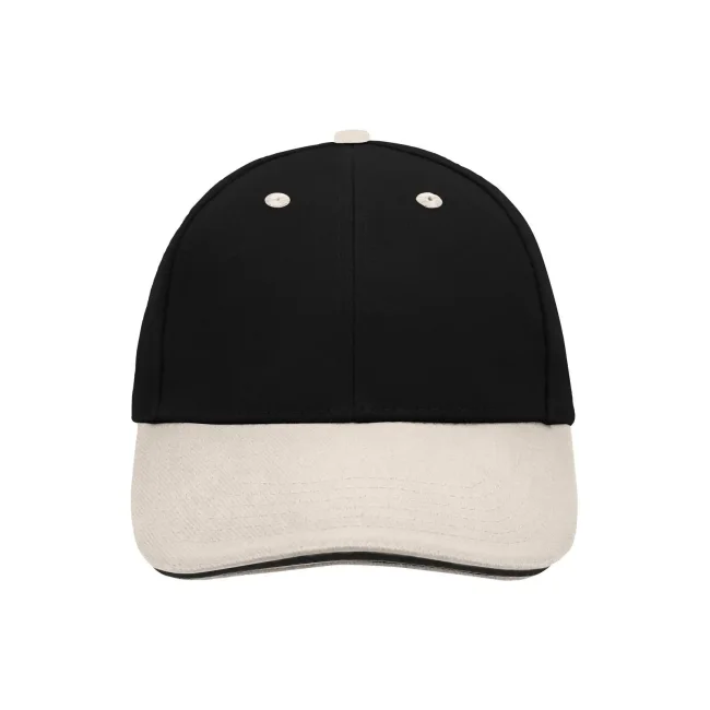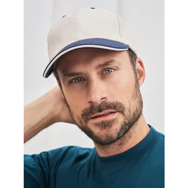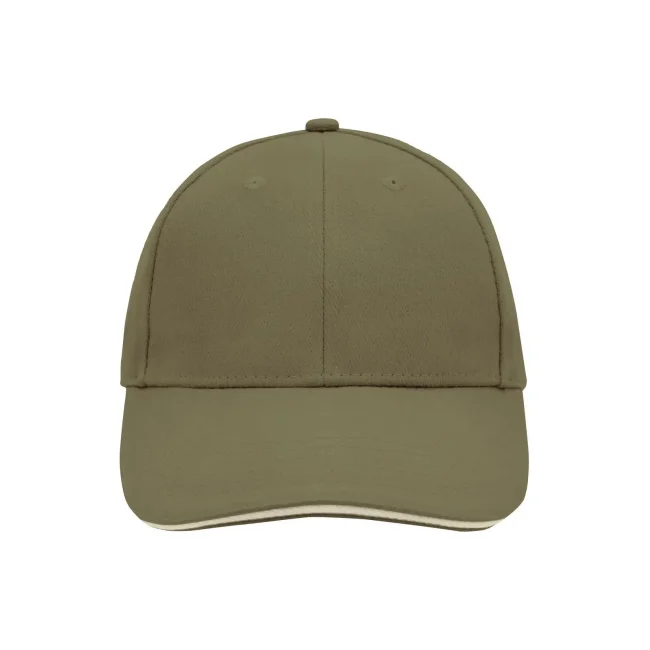 100% cotone. Cap sandwich in molte combinazioni colore, 6 fori traspiranti imbastiti, 6 cuciture decorative sulla visiera, pannelli frontali laminati. Fascetta tergisudore imbottita in satin, chiusura in metallo a clip con asola imbastita, Cotone spazzolato extra forte.