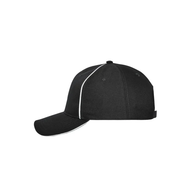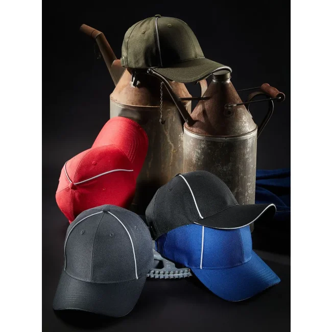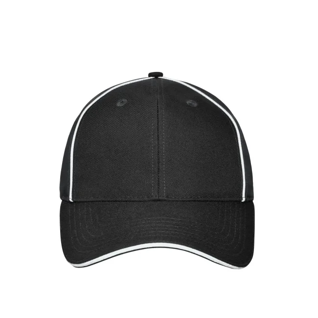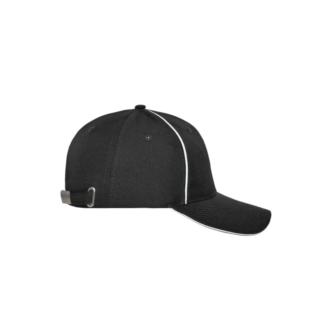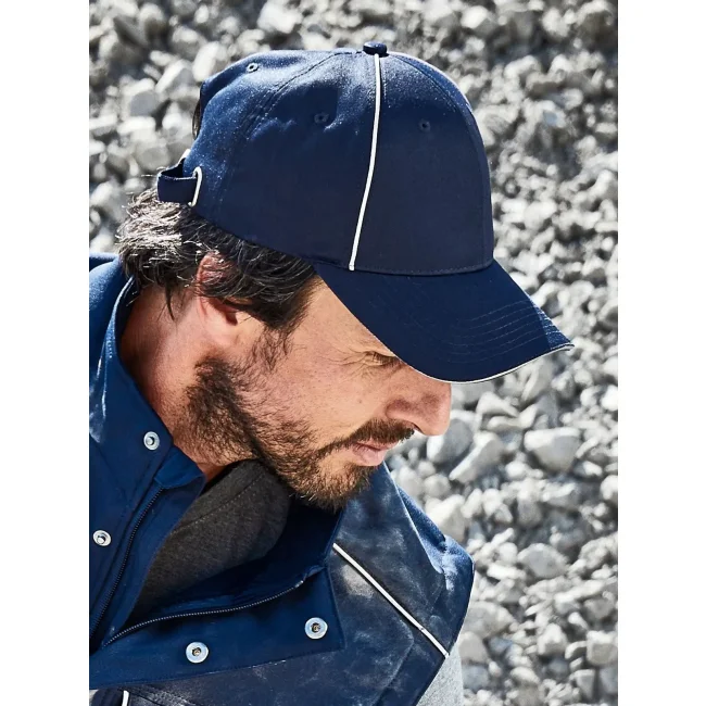 100% poliestere (reciclato). Cappellino da lavoro a 6 pannelli. 6 fori di ventilazione ricamati, 6 cuciture decorative sulla visiera, pannelli frontali laminati, piacevole da indossare grazie alla fascia imbottita, regolazione della clip in argento opaco con occhiello metallico.