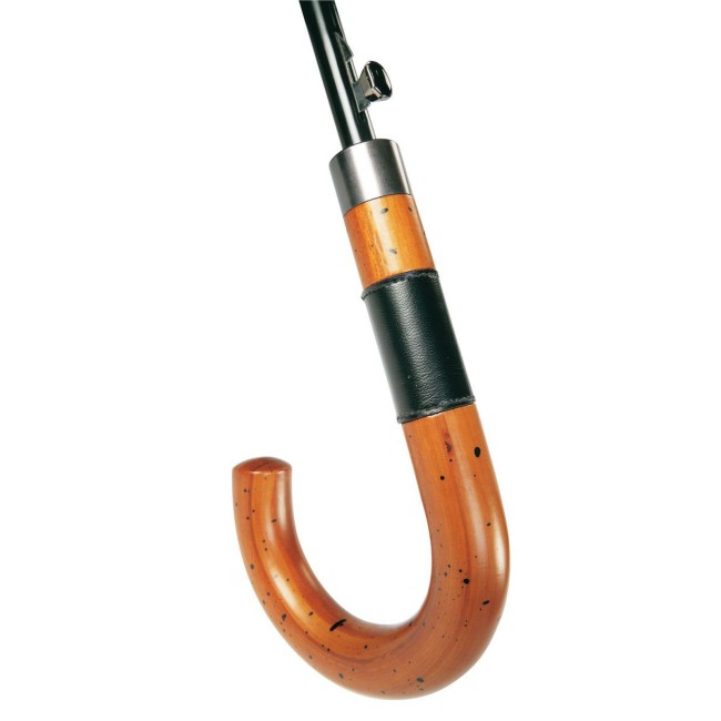 Confortevole funzione automatica per un'apertura rapida, stecche in fibra di vetro flessibili, pregiato sistema Windproof per la massima flessibilità del telaio in caso di forti raffiche di vento, proprietà della fodera idrofughe e autopulenti grazie al rivestimento in tessuto DuPont™ Teflon® originale, pregiato manico a uncino tondeggiante in legno, impugnatura nera e nastro in finta pelle, elevata protezione contro la corrosione grazie alla galvanizzazione nera del bastone in acciaio. Diametro: 115 cm, lunghezz a da chiuso: 94 cm, 8 pannelli.