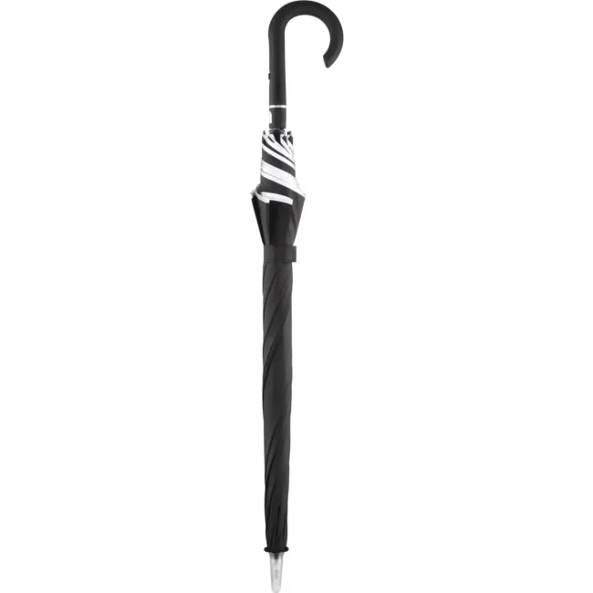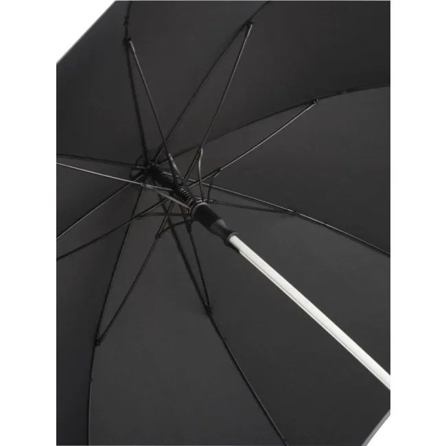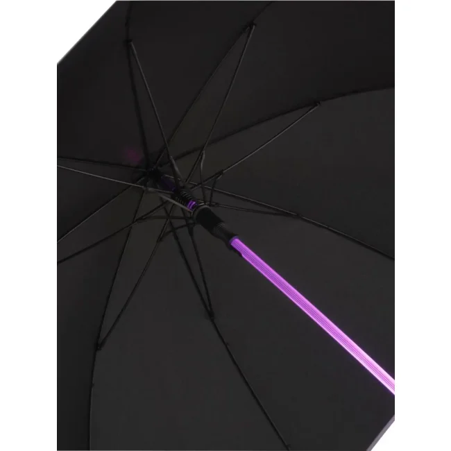 Copertura: 100% poliestere, manico: plastica, asta: acrilico, fibra di vetro. Ombrello di media misura, manico trasparente con luce a LED, apertura automatica, bordino catarifrangente, manico nero soft-touch con dettagli colore argento, pulsante per cambiare il colore delle luci LED, ingresso USB per ricaricarlo. Diametro: 112 cm, lunghezza da chiuso: 92 cm, 8 pannelli.