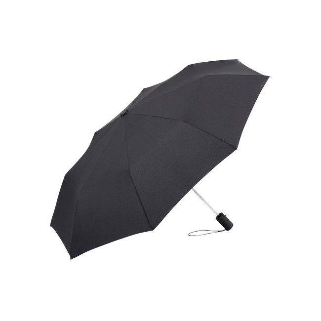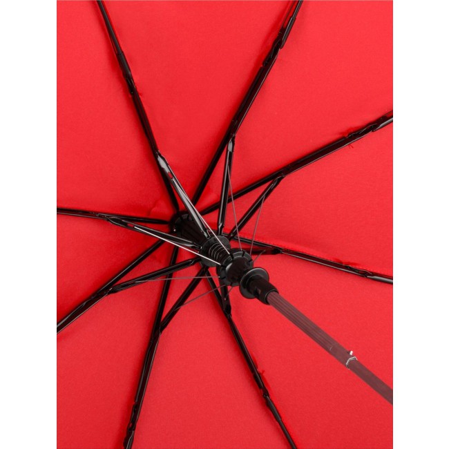 100% poliestere pongee. Ombrello con apertura automatica. Telaio in 3 pezzi con asta in acciaio cromato, manico in plastica nero con rivestimento spec iale e possibilità di stampa a bolla, cordoncino e lastico e punte nichelate. pulsante di sgancio cro mato e rialzato. resistente al vento. diametro: 94 cm, lunghezza: 30 cm. 8 spicchi.