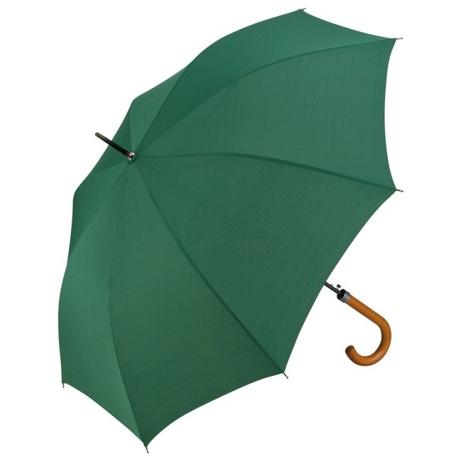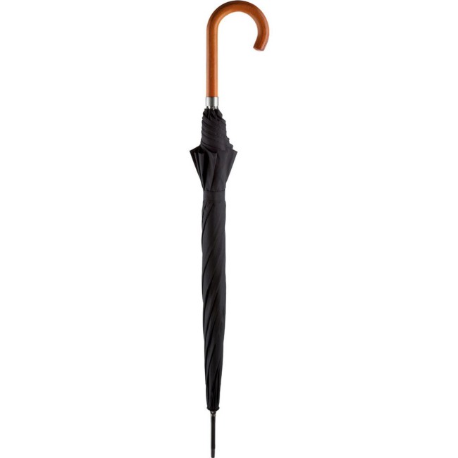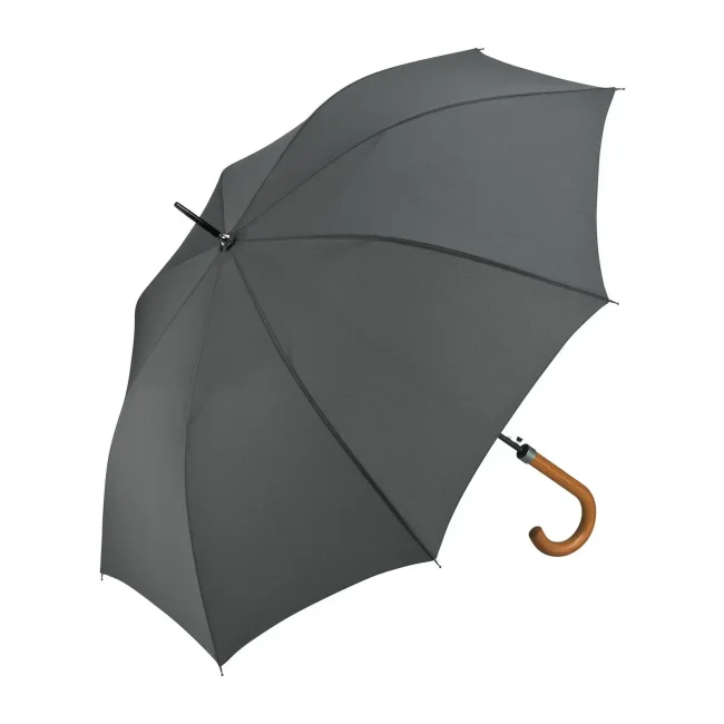 Copertura: 100% poliestere, manico: legno, asta: acciaio galvanizzato. Ombrello dotato di proprietà Windproof, stecche in fibra di vetro flessibili, funzione automatica per aprire rapidamente, manico arrotondato con occhiello in vero legno adatto al laser. Diametro: 105 cm, lunghezza da chiuso: 89 cm, 8 pannelli.