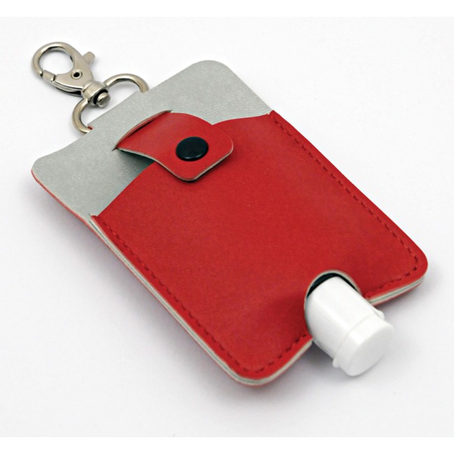 Fornito con gel idroalcolico da 15ml. Completo di pratico moschettone per agganciare al portachiavi o alla borsa.