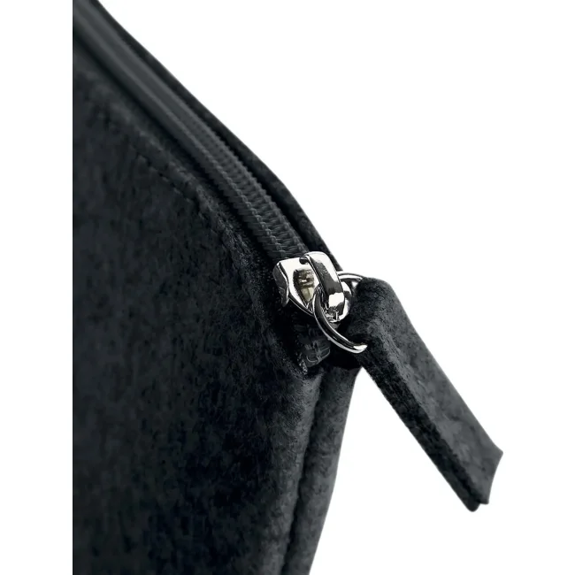 Accessory pouch in poliestere feltro con chiusura a zip e etichetta removibile