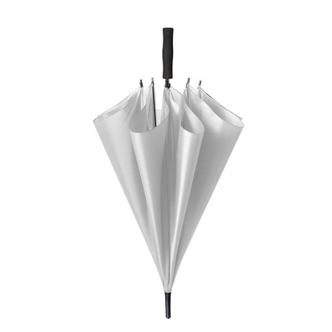 ombrello automatico sistema di apertura con meccanica di alta qualità struttura in fibra di vetro alta resistenza fusto in metallo puntale in plastica nera manico in eva chiusura con velcro tecnica di stampa consigliata: serigrafica - sublimatica (BI) - transfer