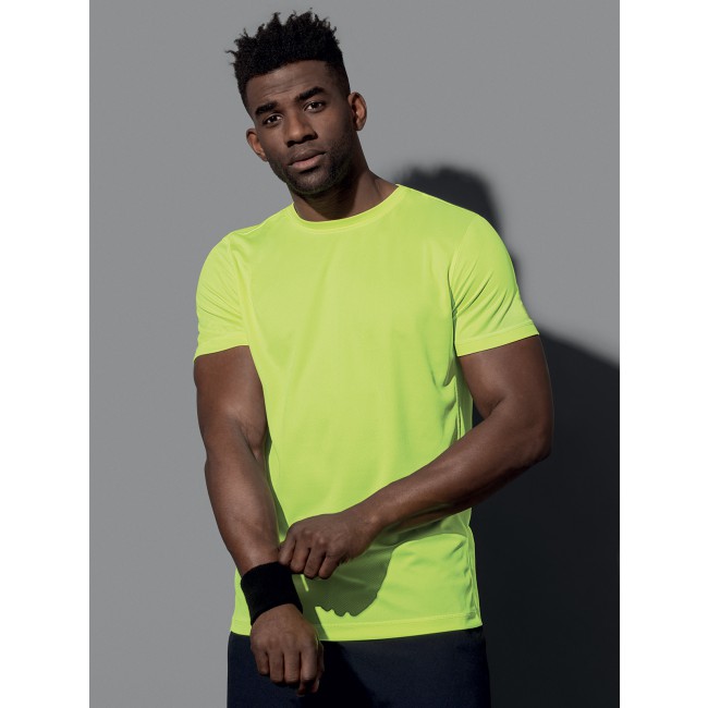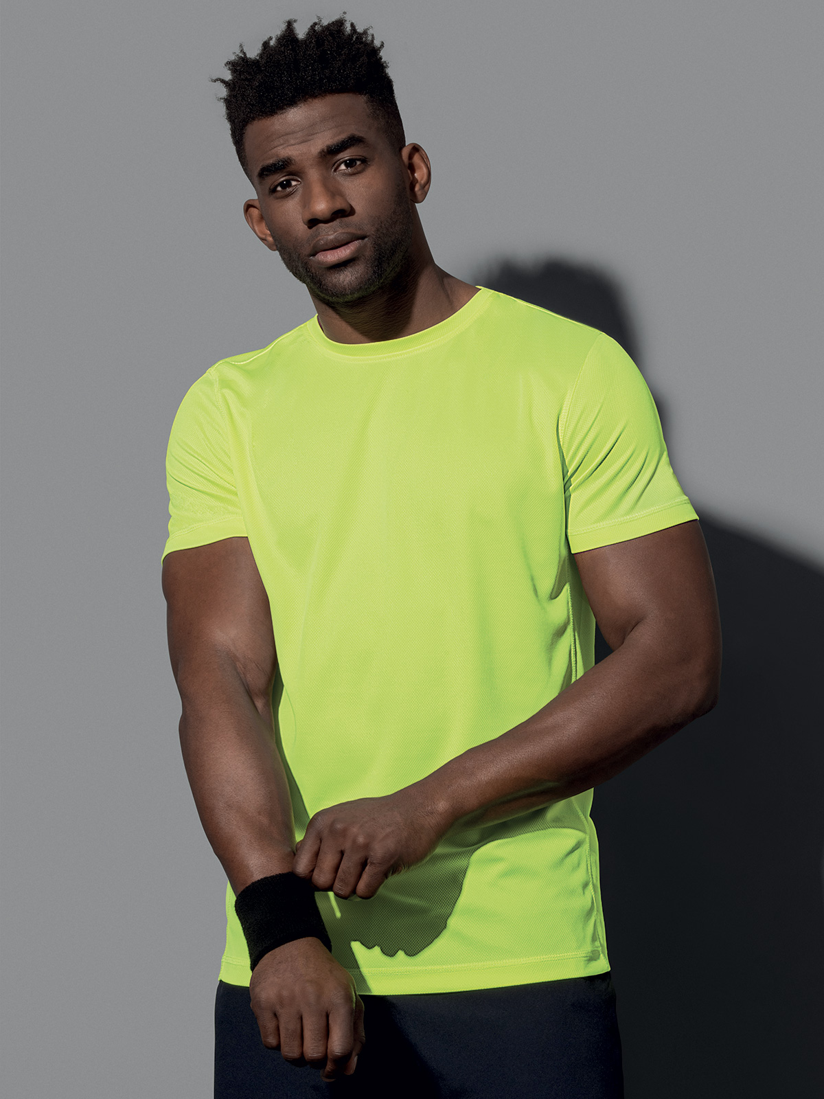 100% poliestere Active-DRY°. T-shirt maniche corte set-in, struttura con pannelli laterali, parasudore in contrasto, etichetta strappabile.