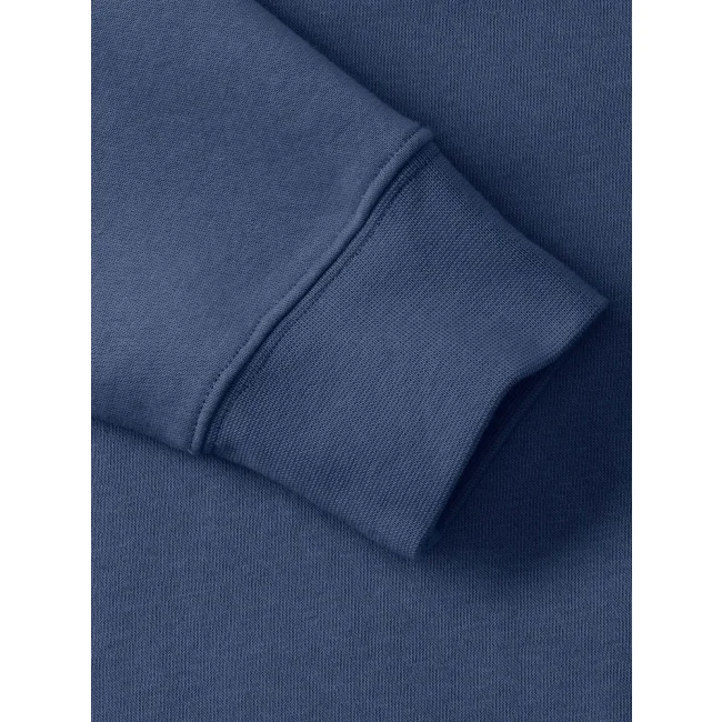 80% cotone pettinato ring-spun, 20% poliestere. Felpa con maniche set-in, tessuto a 3 strati, fettuccia sul collo a spina di pesce, felpata internamente, struttura con cuciture laterali.