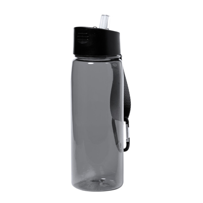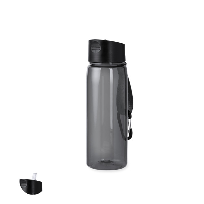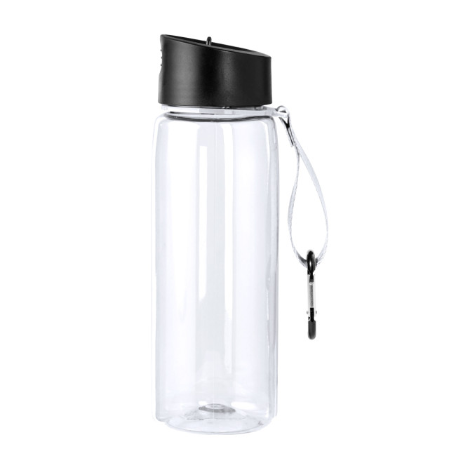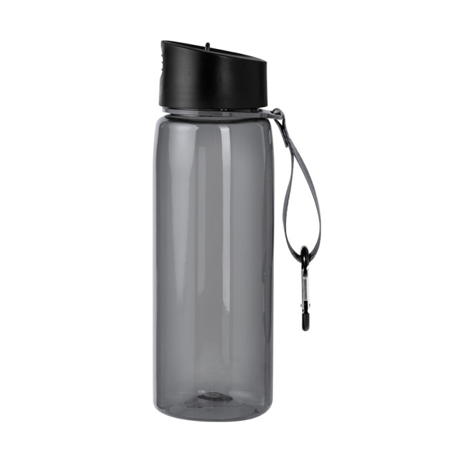 Borraccia da 800 ml in RPET resistente con finitura del corpo trasparente in vari colori. Tappo a vite nero, con dispenser e beccuccio pieghevole. Con cinghia di trasporto abbinata e moschettone in metallo per un comodo trasporto. Disponibile in un'ampia gamma di colori.Il materiale RPET è realizzato con plastica riciclata per incoraggiare il riutilizzo dei rifiuti plastici e contribuire alla sostenibilità del pianeta.