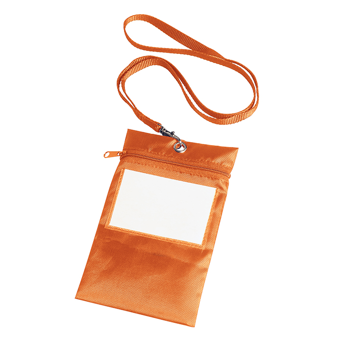 borsellino collier multiuso nylon 210D chiusura con cerniera occhiello in metallo laccetto con gancio tecnica di stampa consigliata: serigrafica -sublimatica (BI)