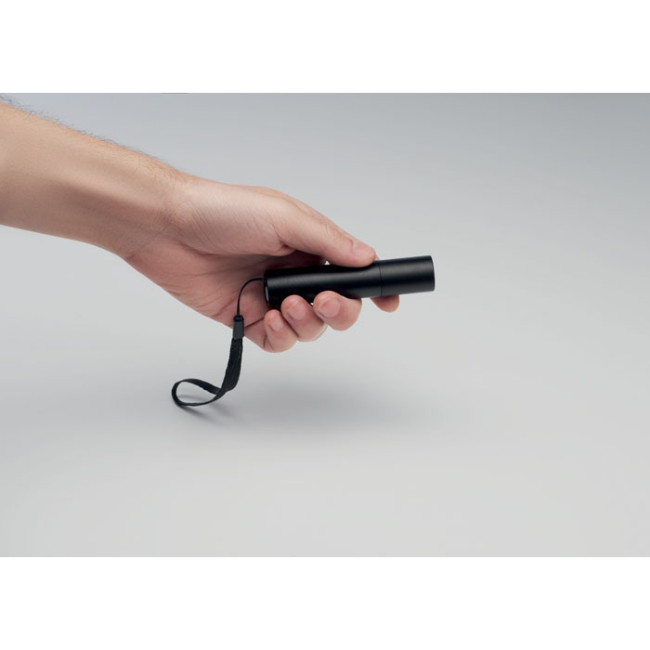 Torcia ricaricabile in alluminio da 110 lumen con 3 impostazioni di luce e funzionalità di zoom in/out. Batteria ricaricabile integrata da 400 mAh e cavo di ricarica in dotazione.