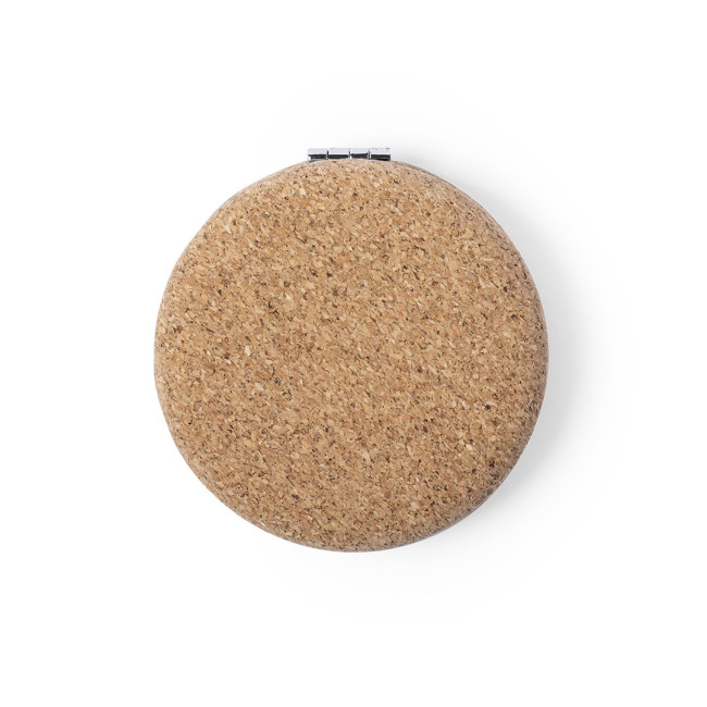 Specchio pieghevole della linea della natura. Realizzato in una combinazione di sughero naturale e metallo cromato. Due specchi interni: 1X / 2X. Confezionato singolarmente in un attraente cofanetto individuale dal design ecologico.