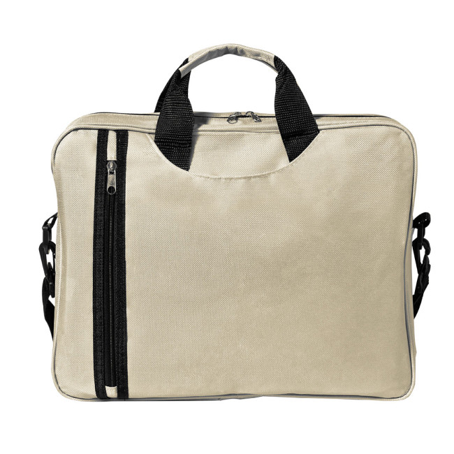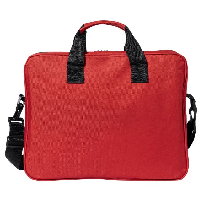 Portadocumenti con cerniera, originale taschino verticale anteriore e scomparto sotto le maniglie in morbido poliestere 600D dai colori vivaci. Con manici rinforzati e tracolla regolabile con chiusura a moschettone.
