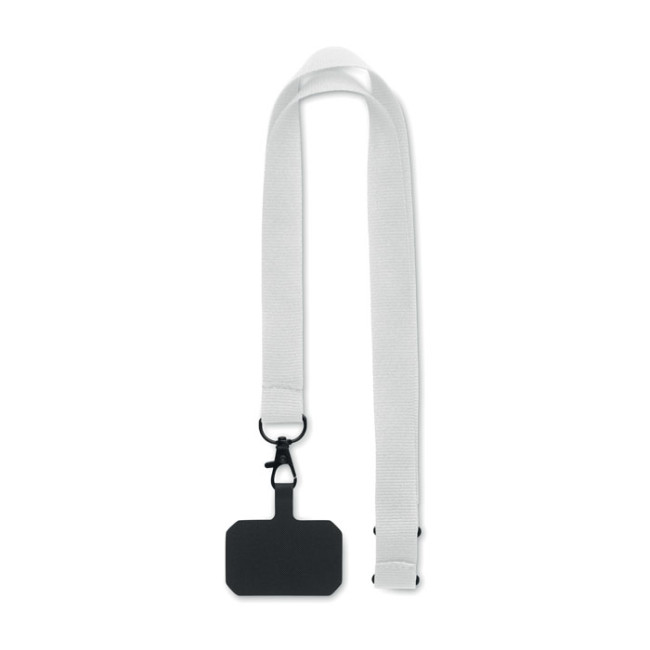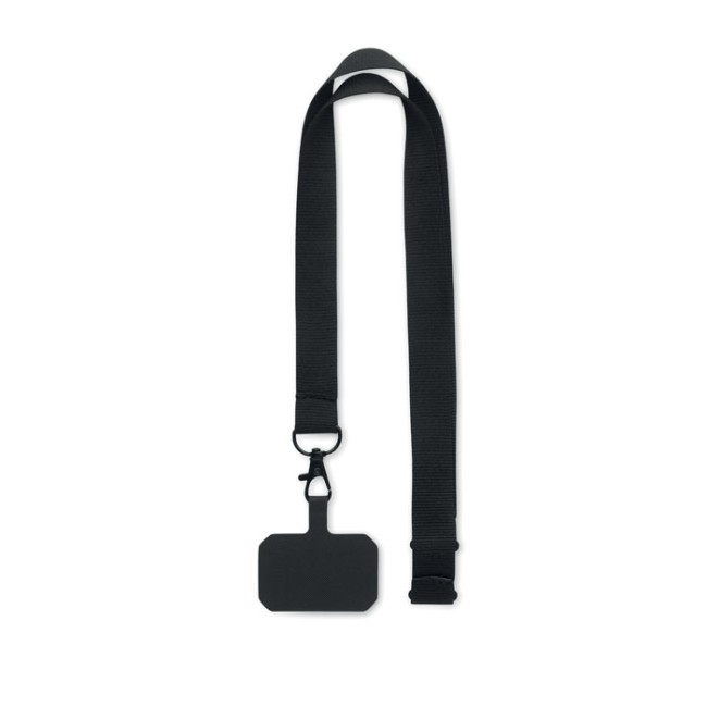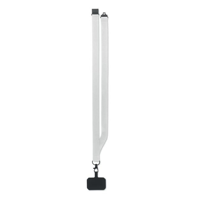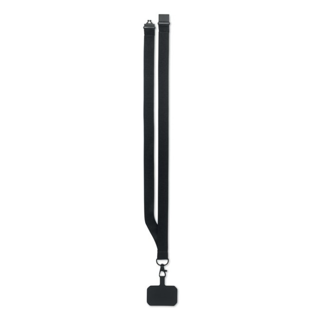 Lanyard in poliestere con portacellulare con cavo e fibbia di sicurezza. 2 cm.
