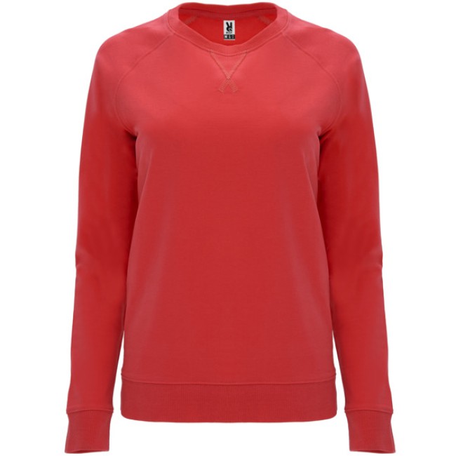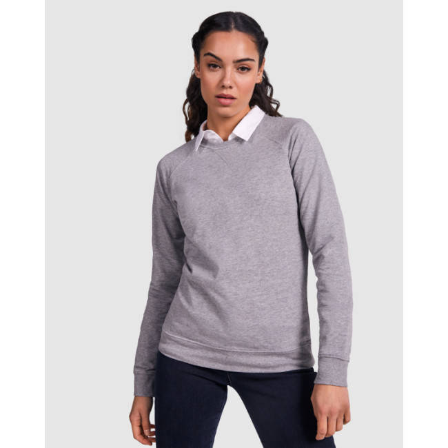 Felpa a maniche lunghe in cotone stile raglan. Con colletto, polsini e girovita, in costina 2x1. Girocollo con copri cuciture di rinforzo all'interno del colletto. Dettaglio frontale con cuciture incrociate, in tessuto a costine 2x1.