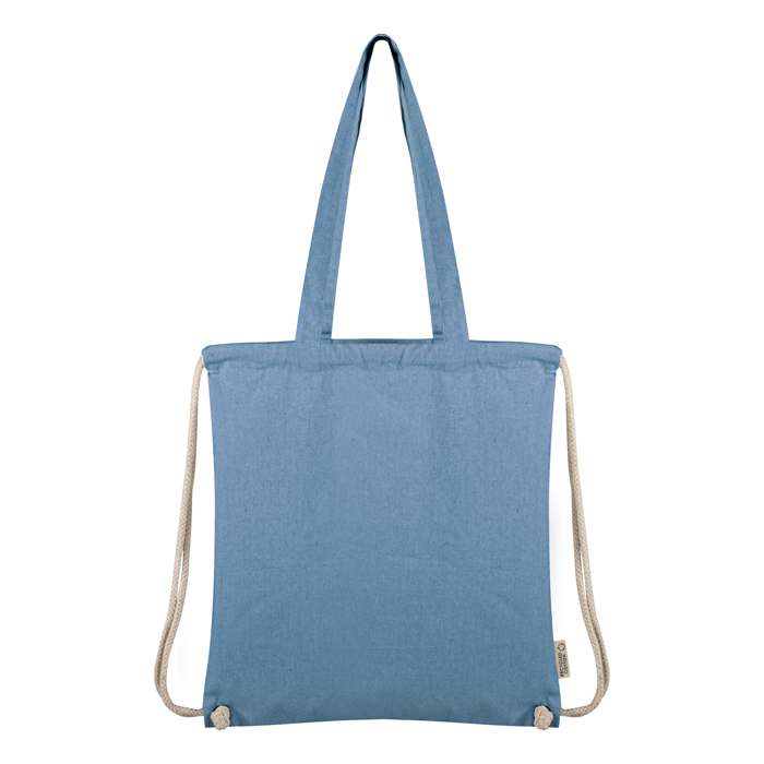 borsa shopping cotone riciclato rifiniture cucite manici lunghi doppia corda di chiusura tecnica di stampa consigliata: serigrafica - transfer 150 GR