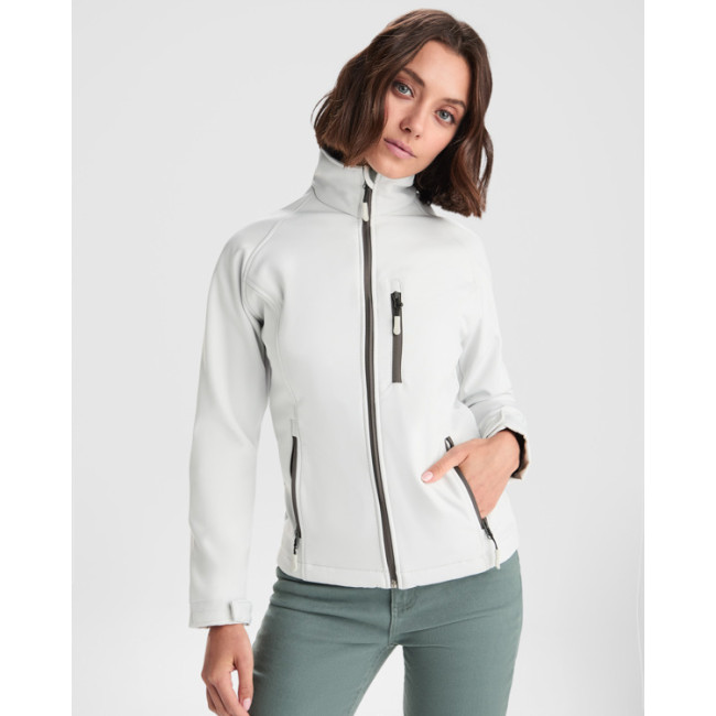 Giubbotto softshell a 2 strati con zip frontale invertita a contrasto. Idrorepellente e resistente al vento. Vestibilità aderente in vita. Foderato in tessuto micropile. Due tasche laterali e una tasca sul petto a sinistra con cerniere invertite a contrasto. Protezione per il mento in tessuto uguale sul rovescio. Regolatori laterali interni.