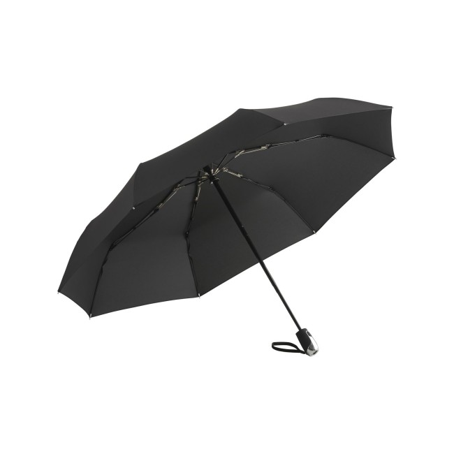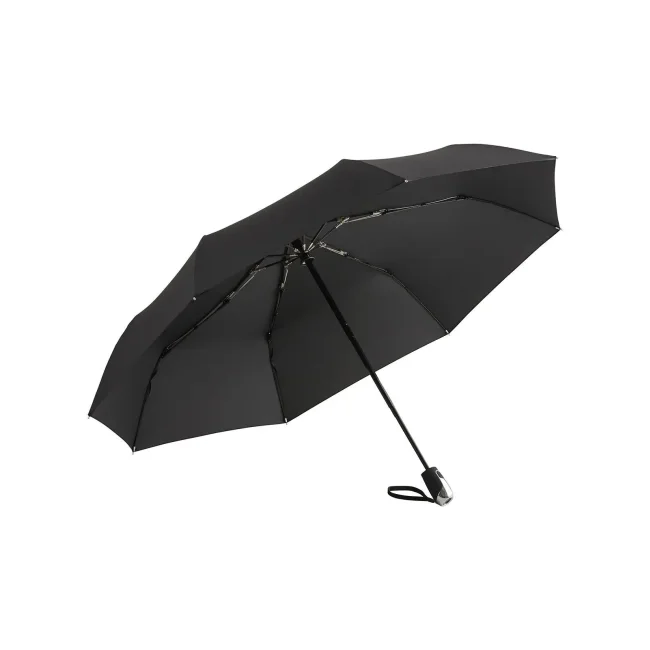 100% Polyester Pongee riciclato. Manico: plastica, asta: acciaio. Ombrello con apertura e chiusura automatica, stecche in fibra di vetro, giunti argentati, ecologico grazie alla tipologia del materiale, sistema windproof. Diametro: 105 cm, lunghezza da chiuso: 31 cm, 8 pannelli.