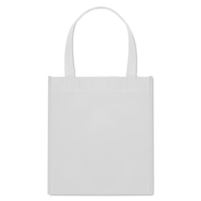 Shopper termosaldata in non woven da 80gr, con soffietto laterale. Manici corti.
