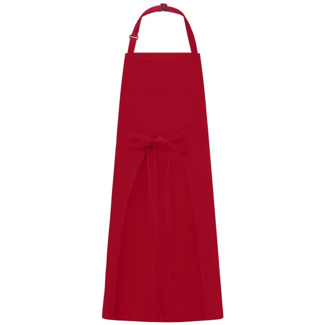 65% poliestere, 35% cotone. Grembiule con pettorina classico, tessuti misti resistenti di poliestere e cotone, larghezza pettorina: ca. 30 cm, larghezza grembiule: 75 cm, lunghezza totale: 90 cm, tasca cucita in due pezzi (larghezza: 40 cm, altezza: 20 cm), nastro regolabile tramite fibbia in plastica, lavabile a 60°C, adatto per l'asciugatura in asciugatrice.