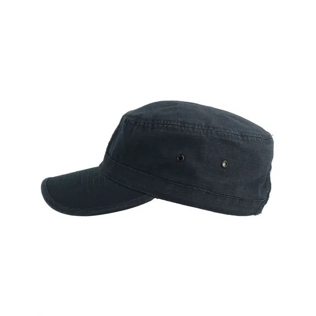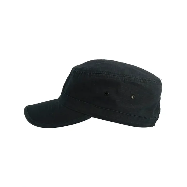 100% cotone rip-stop lavato in capo. Cappellino da baseball rivestito internamente, forma aderente, visiera bordata, chiusura con cinturino in tessuto e velcro, etichetta removibile, taglia unica.