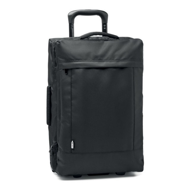 Trolley morbido in poliestere 600D RPET. Due ampi scomparti interni con cerniera, tasca frontale con cerniera e manici superiori e laterali. Serratura a combinazione e un telaio a doppio tubo.