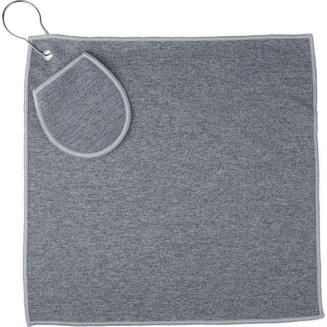 Asciugamano per il golf in rPET con tasca per palline da golf integrata, misura circa 31 x 31 cm. Presenta un gancio in metallo per un facile aggancio alla borsa e include un’etichetta rPET all’interno. Lavabile in lavatrice (a freddo).