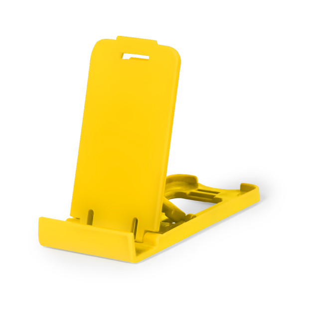 Supporto per smartphone e tablet in PP resistente. Design compatto e pieghevole per portarlo ovunque. Con diverse posizioni di inclinazione. Disponibile in un'ampia gamma di colori. Presentato in un sacchetto individuale riciclato.