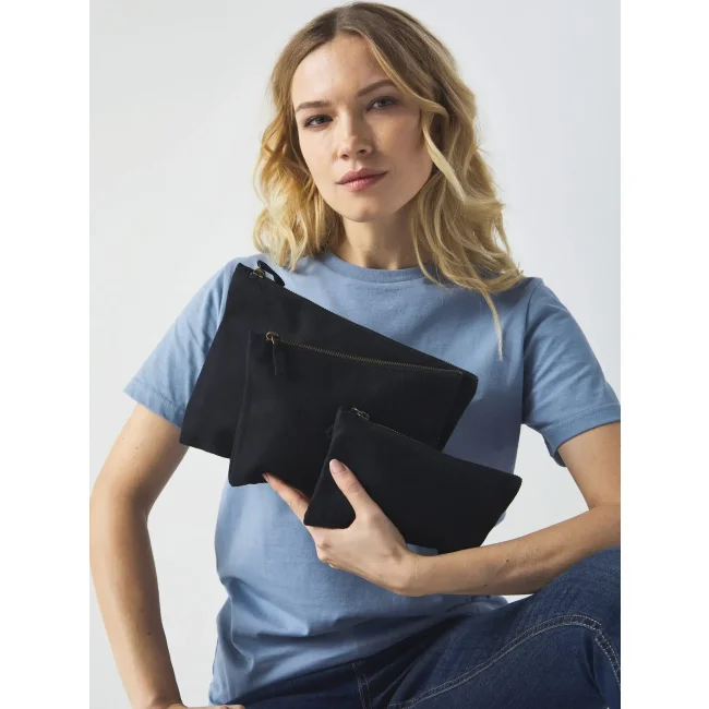 100% cotone organico GOTS. Pochette con Zip in metallo anticato per un effetto vintage. Etichetta strappabile. Dimensioni: S: 20x11,5 cm, M: 22x16 cm, L: 28x20 cm
