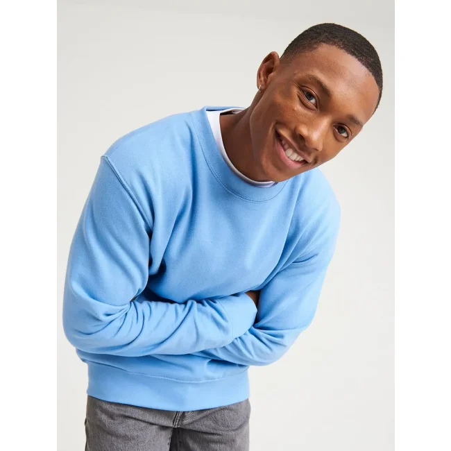 80% cotone, 20% poliestere. Felpa girocollo con maniche set-in. Colletto, polsini e orlo inferiore in costina. Nastro di rinforzo sul collo, cuciture doppie. Colletto, polsini e orlo collo, cuciture doppie. Colletto, polsini e orlo a costine. Felpata internamente, struttura con cuciture laterali. Etichetta tear-away perfetta per il rebranding. Tessuto morbido sul davanti per una superficie di stampa ideale.