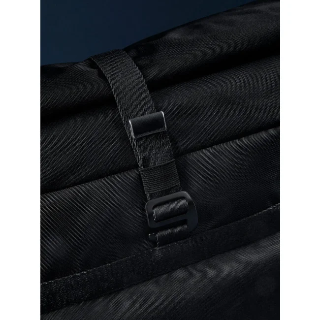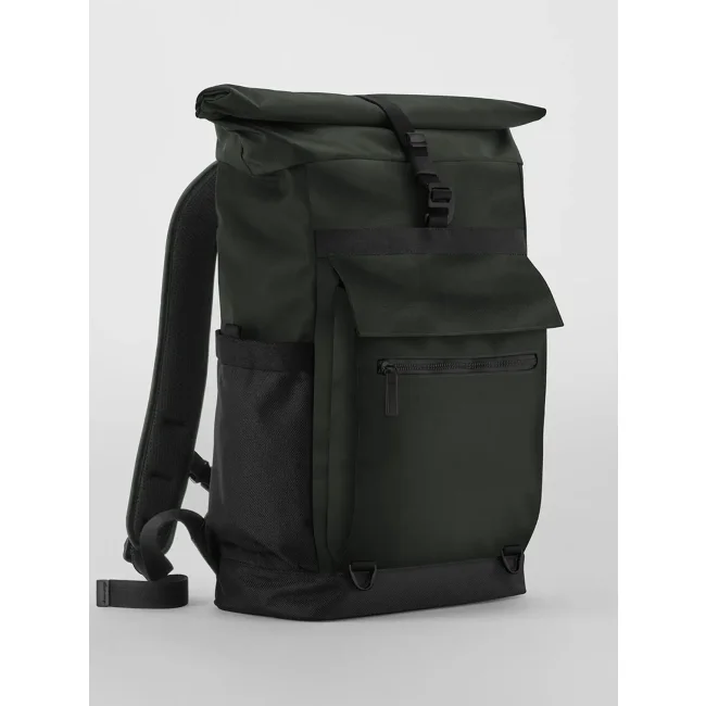 100% poliestere riciclato. Zaino per laptop fino a 16'' in poliestere riciclato certificato GRS, tasca frontale con chiusura magnetica, tasche laterali, tasca frontale con zip, chiusura roll-top, cinghia posteriore per bagaglio, spallacci imbottiti e regolabili. Dimensioni: 46x38x13cm, Capacità: 22 litri. Etichetta strappabile.