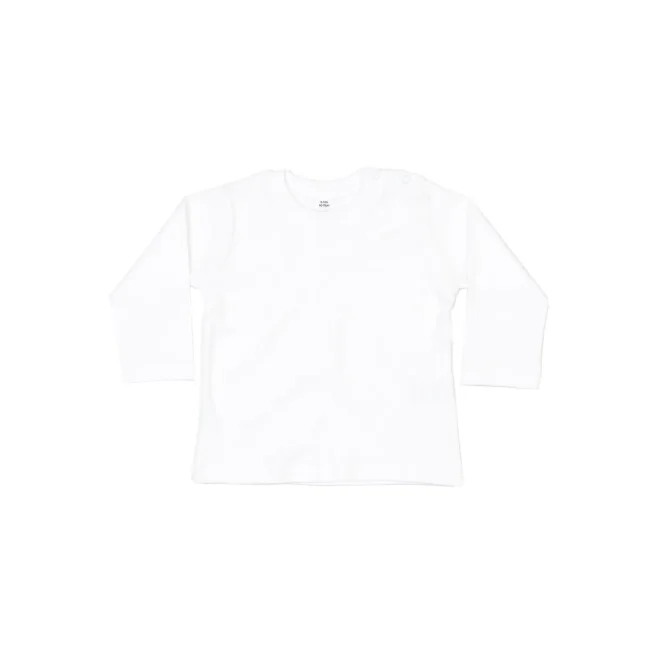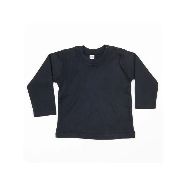 100% cotone organico ring-spun. T-shirt maniche lunghe set-in, 2 bottoni a pressione al collo, struttura con cuciture laterali. Col. HGM: 85% c. 15% pol.