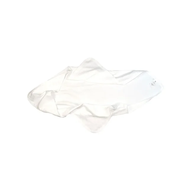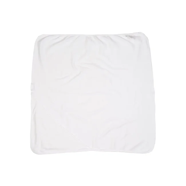 100% Cotone Organico. Copertina monostrato con chiusure sui bordi per mantenere la forma. Cappuccio triangolare in uno degli angoli. Etichetta strappabile.