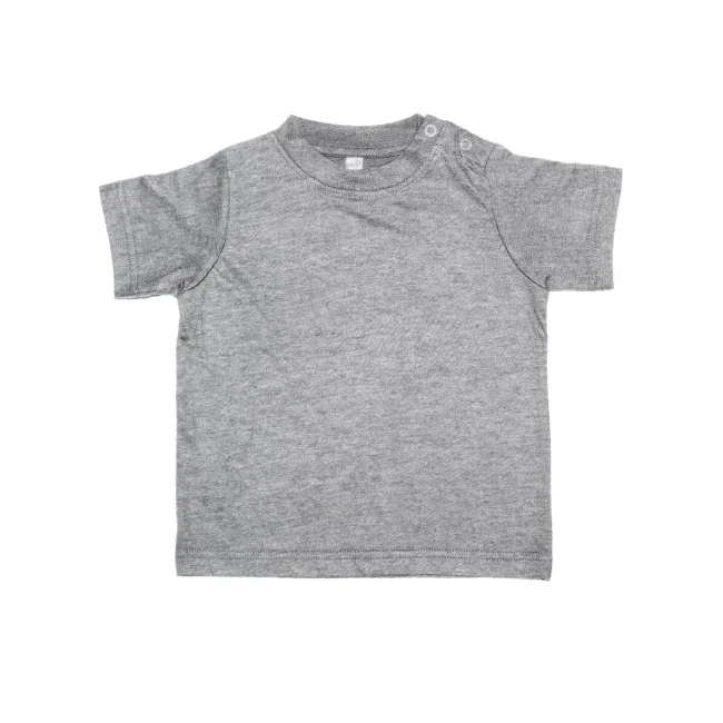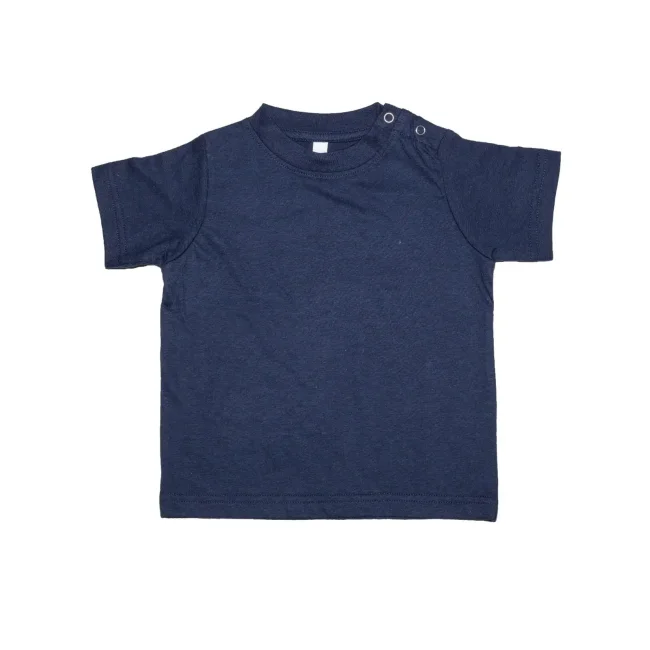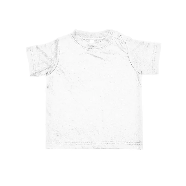 100% cotone. T-shirt bebé maniche corte set-in, due bottoni automatici al collo per una migliore vestibilità. Etichetta taglia al collo ed etichetta composizione senza logo al fianco.