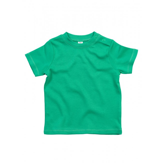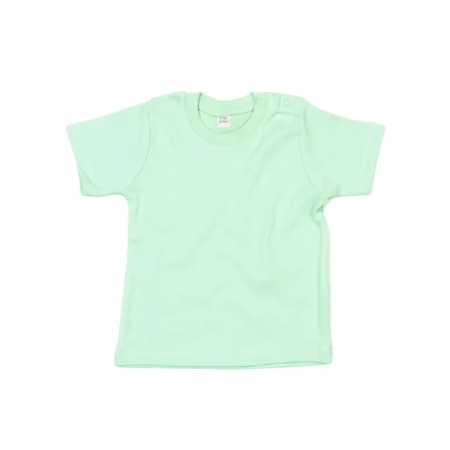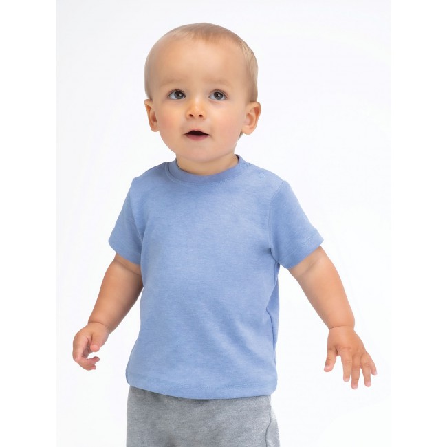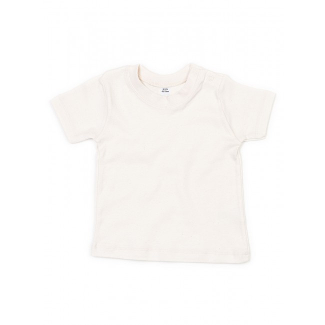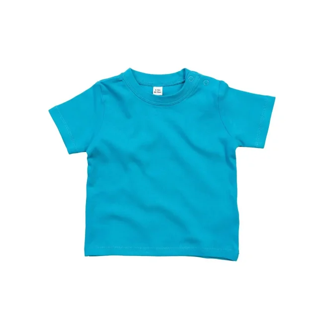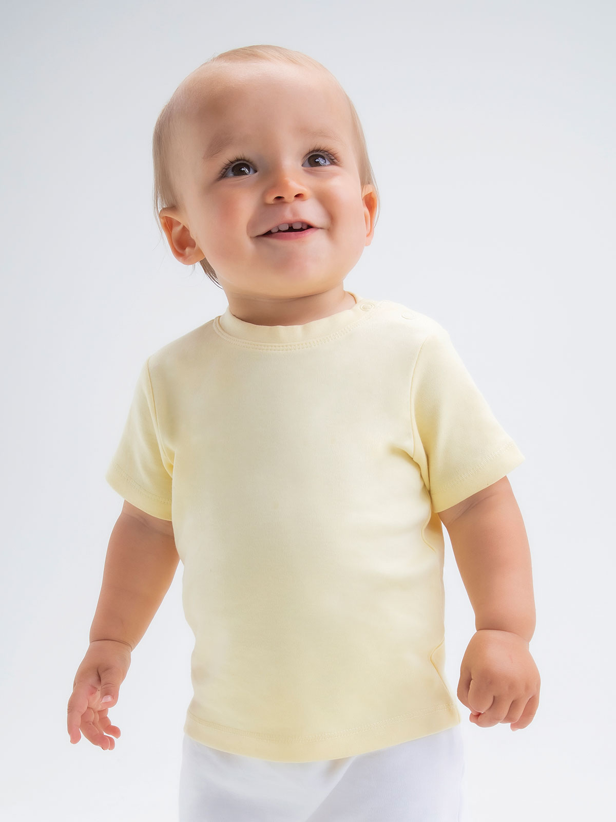 100% cotone pettinato interlock. T-shirt maniche corte set-in con bottoni automatici sulle spalle, struttura con cuciture laterali. Alcuni colori sono in cotone organico. Col. MC: 60% cot. org 40% pol.