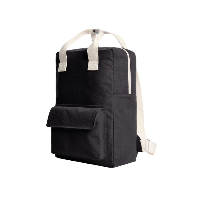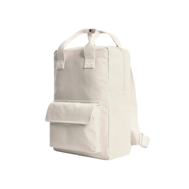 100% cotone. Zaino urban con scomparto principale con zip, tasca interna piatta, tasca anteriore con chiusura a velcro, spallacci in cotone regolabili. Dimensioni: 27 x 38 x 13 cm, area di stampa su tasca anteriore: 17 x 4,5 cm, sulla parte frontale 21 x 7 cm, capacità 18 L.