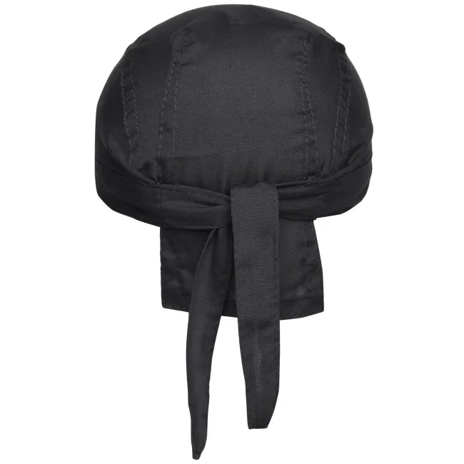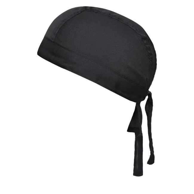 97% poliestere 3% cotone. Bandana con chiusura sulla nuca.