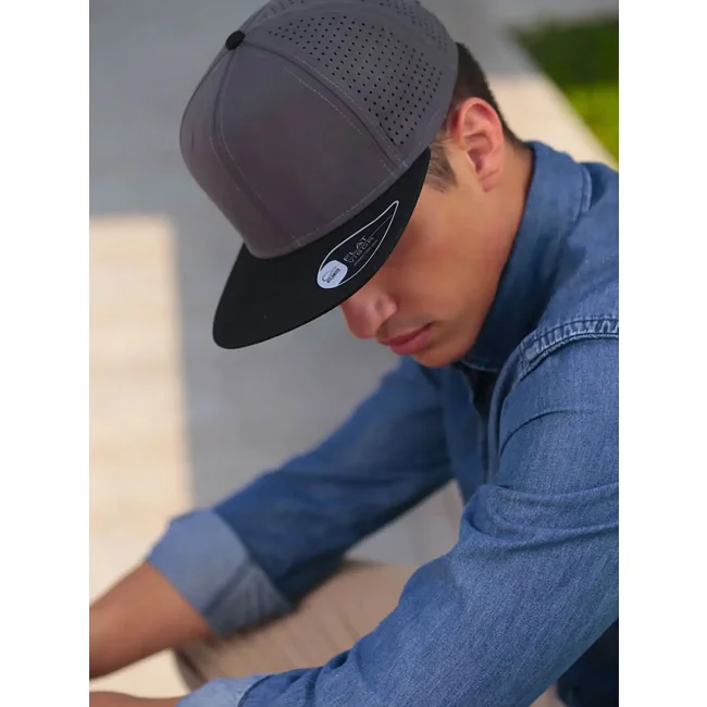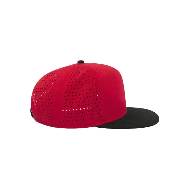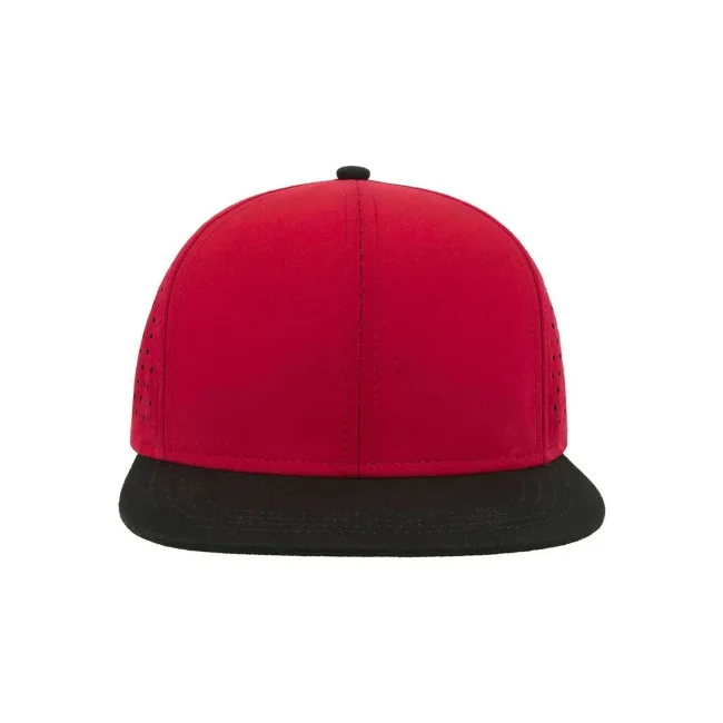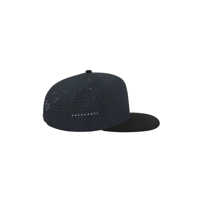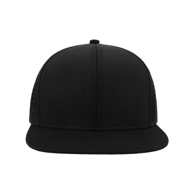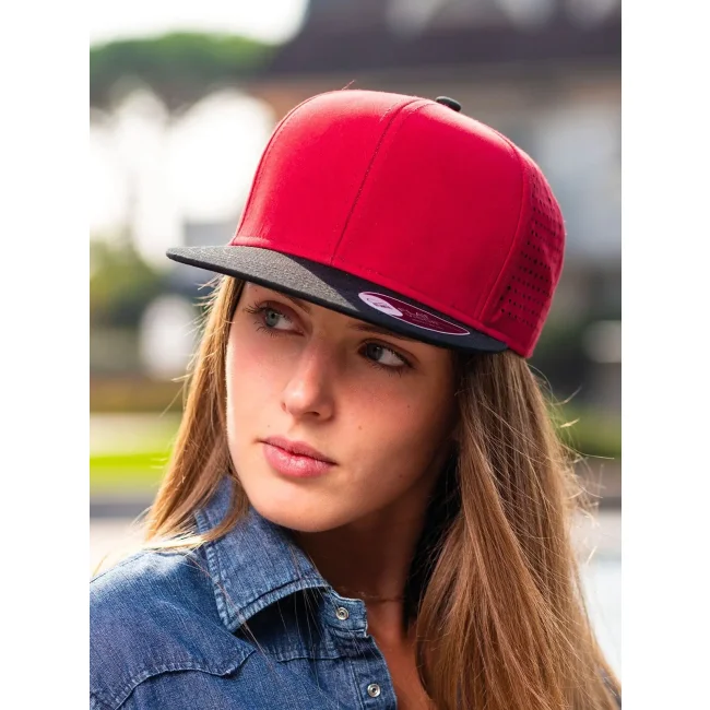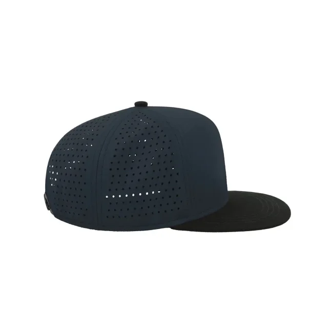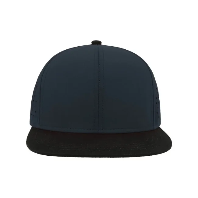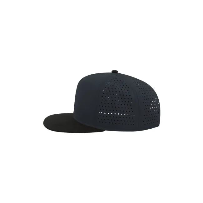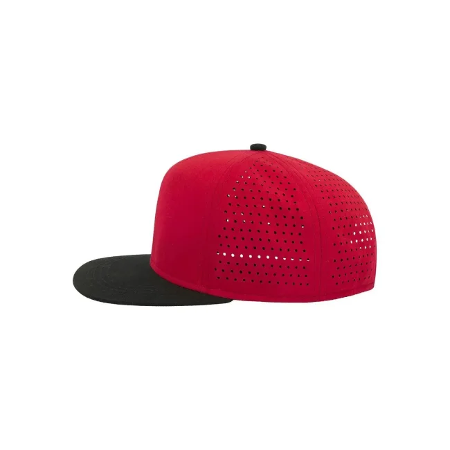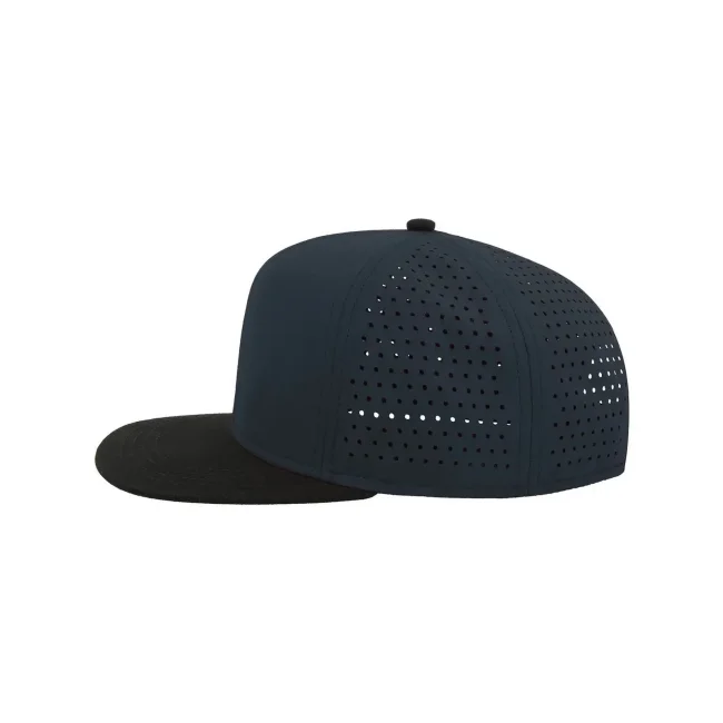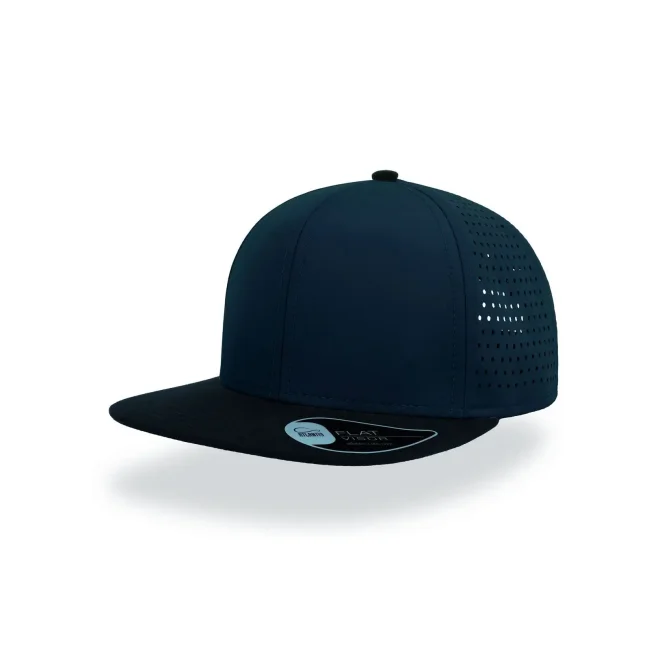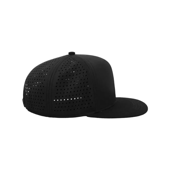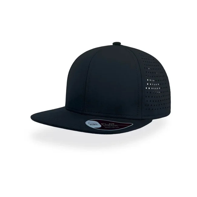 100% poliestere. Visiera: 100% cotone. Cappellino a 6 pannelli con visiera piatta squadrata, 4 cuciture sulla visiera, chiusura snapback in pvc, etichetta removibile, taglia unica. Nuovo codice: ATBANS