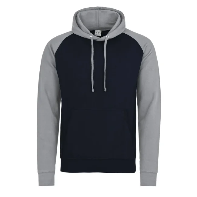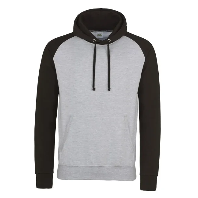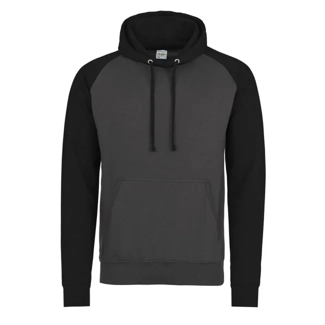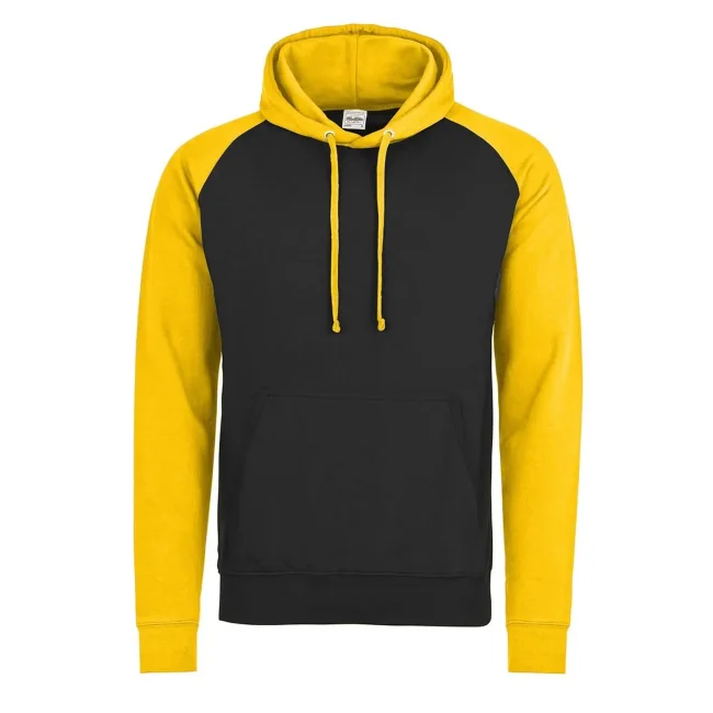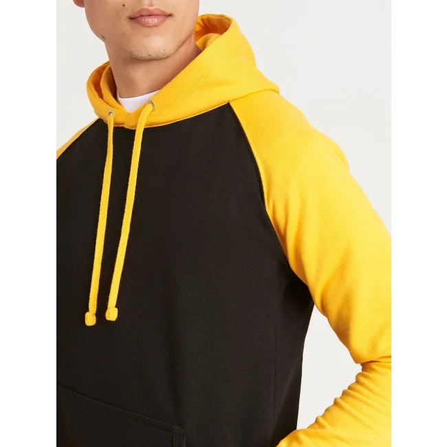 80% cotone ring-spun, 20% poliestere. Felpa con maniche raglan, cappuccio con cordoncino di colore contrastante, tasca a marsupio, felpata internamente, etichetta strappabile, struttura con cuciture laterali.