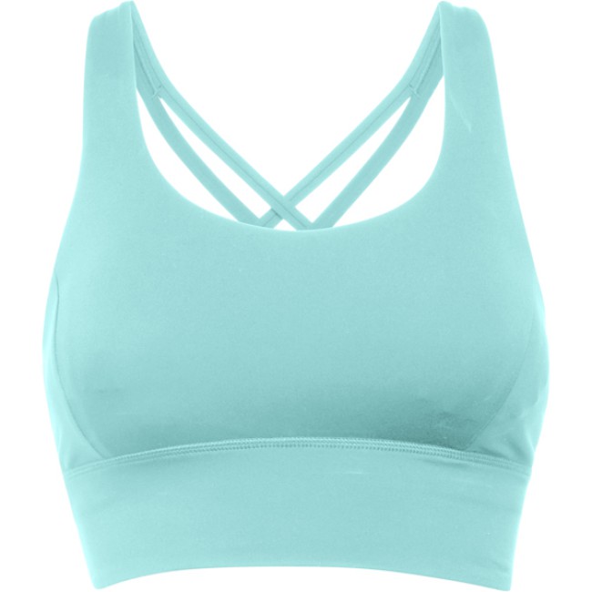 Top sportivo ad alto sostegno. Cinghie posteriori intrecciate. Banda elastica di rinforzo fascia di rinforzo sotto il petto. Tessuto doppio e foderato. Coppe in schiuma rimovibili. Logo Roly riflettente sul retro.