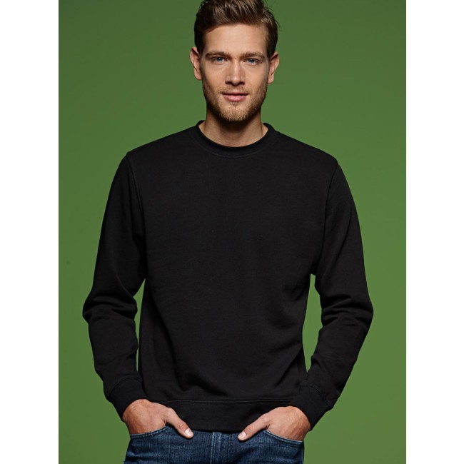 100% cotone. Felpa classica in french terry, French terry di alta qualità, sgarzata, Bordino con elastan, necktape, Cuciture doppie sul collo, sulle maniche e sul bordino, Tessuto esterno (300 g/m²). Manica lunga, collo rotondo