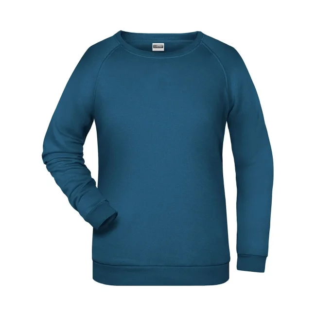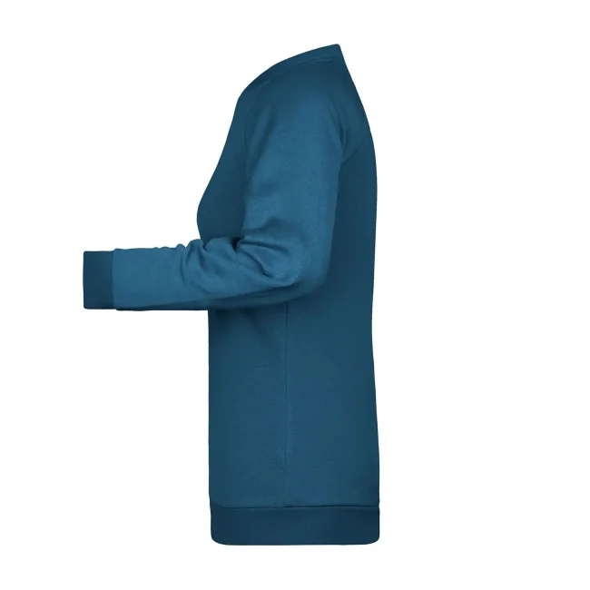 80% cotone, 20% poliestere. Felpa da donna felpata internamente con banda parasudore nel colletto, polsini con elastane. Leggermente sfiancata. Etichetta strappabile.
