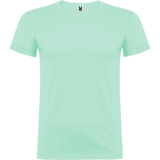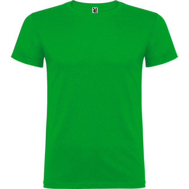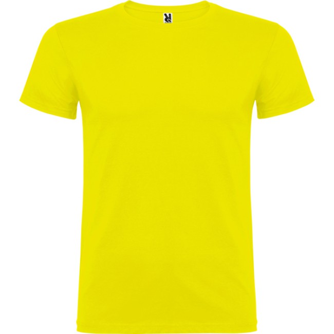 T-shirt maniche corte. Girocollo con elastan e copri cuciture da spalla a spalla. Tubolare nelle misure per adulti e con cuciture laterali nelle misure per bambini.