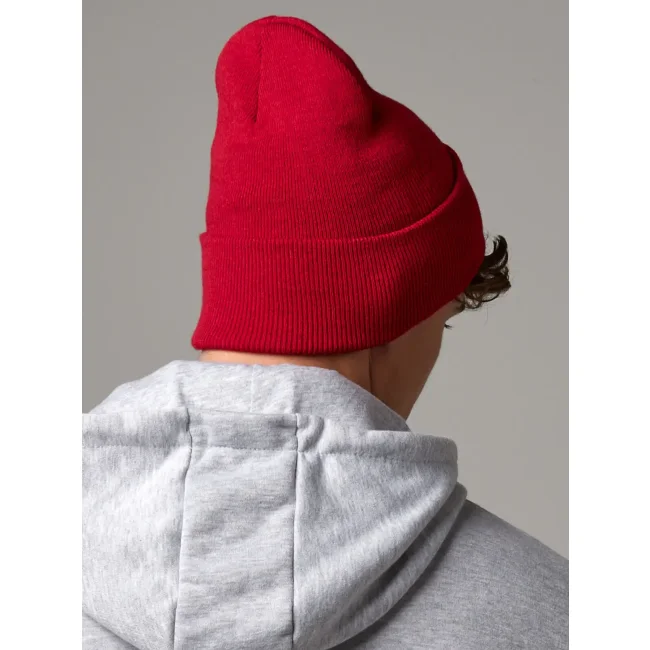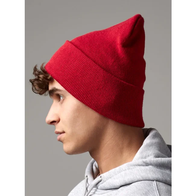 Cuffia profonda in maglia a doppio strato, composta per il 50% da poliestere riciclato certificato GRS. Il design con risvolto consente una decorazione ottimale, mentre l'etichetta removibile facilita il rebranding.